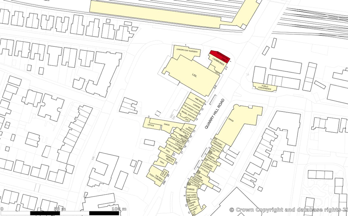 1 Quarry Hill Road is situated at the southern end of the town, adjacent to the train station. The property is in a parade of shops anchored by Lidl.