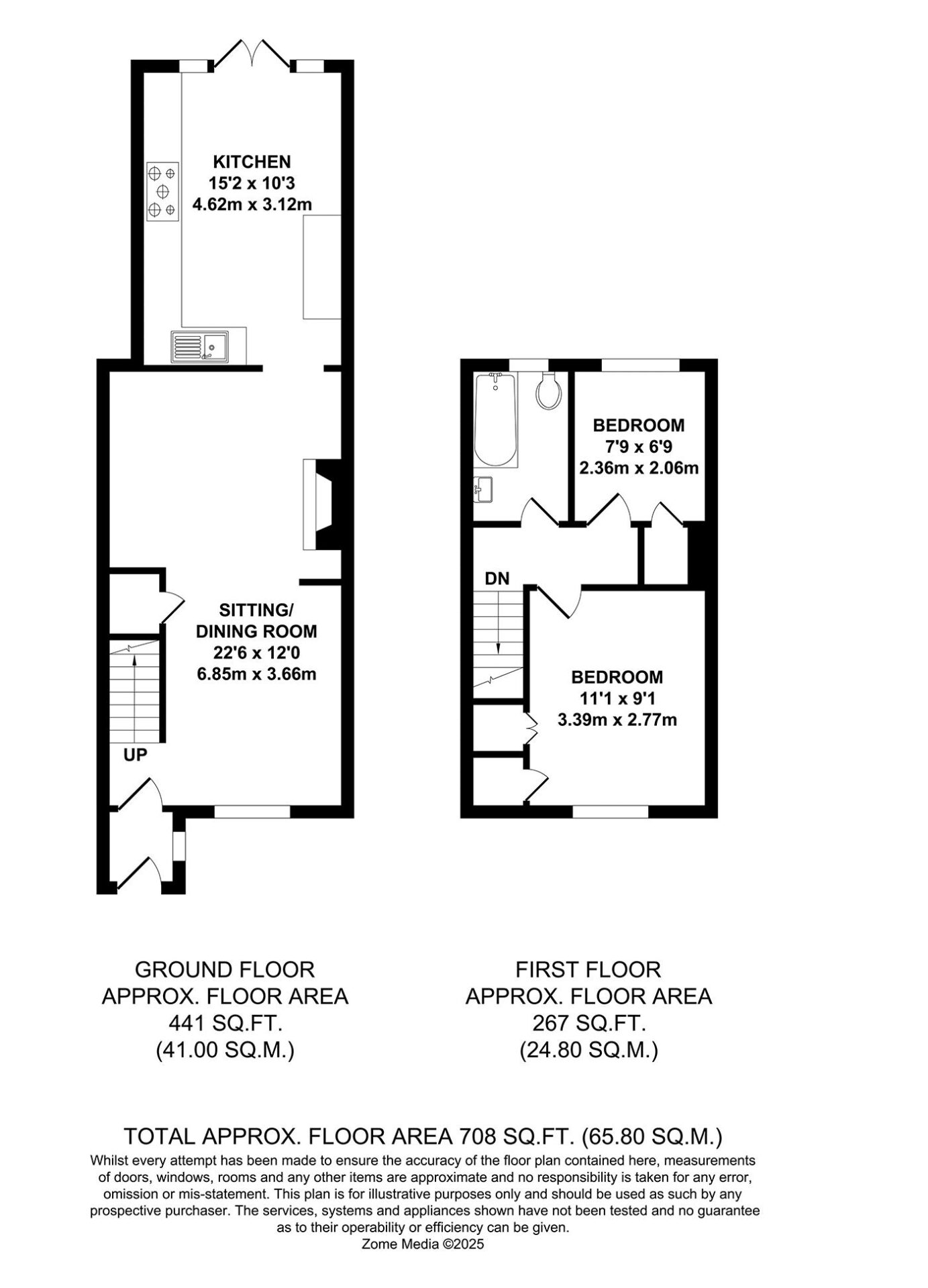 Bracketts are delighted to offer for sale this pretty two-bedroom terraced cottage, situated in a quiet rural setting just outside the charming Village of Hadlow. Internally the property comprises entrance porch, open plan living room / dining room with wood burning stove and a good size kitchen / breakfast room. Upstairs there is the principal bedroom to the front with fitted cupboards, bedroom two / study and family bathroom. To the rear of the property there is a lovely enclosed private garden with well established borders and beds. The property is being offered for sale with no onward chain and an internal inspection comes thoroughly recommended in order to appreciate its size and location.