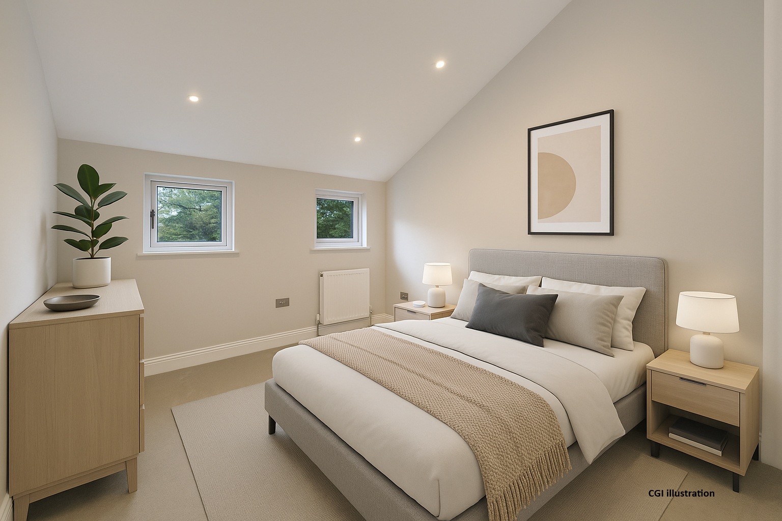 2 Spring Barn is located at the end of a row of four attached dwellings and is finished to a high specification. The kitchen is fitted with bespoke painted wood units with Quartz worktops, integrated Bosh and Neff appliances, induction hob and integrated extractor fan, fan assisted oven, integrated microwave and undermount sink with integrated drainer. The heating is controlled by a thermostatically efficient air source heat pump with ‘Samsung technology’, zoned underfloor heating to the ground floor, contemporary radiators, Lutron smart system lighting, LED downlighters to the kitchen and bathroom. The house is designed so a bedroom can be created downstairs with a shower room opposite.