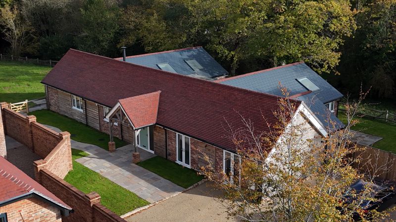 Pond Barn is finished to a high specification. The kitchens are fitted with bespoke painted wood units with quartz worktops, integrated Bosh and Neff appliances, induction hobs and integrated extractor fans, fan assisted ovens, integrated microwaves, undermount sinks with integrated drainers. The heating is controlled by a thermostatically efficient air source heat pump with ‘Samsung technology’, zoned underfloor heating to ground floor, contemporary radiators, Lutron smart system lighting, LED downlights to kitchens and bathrooms. The garden measures approx. 1.3 acres, mainly laid to lawn with patio areas outside the reception rooms and also the main bedroom, access to the pond and also a private parking area.