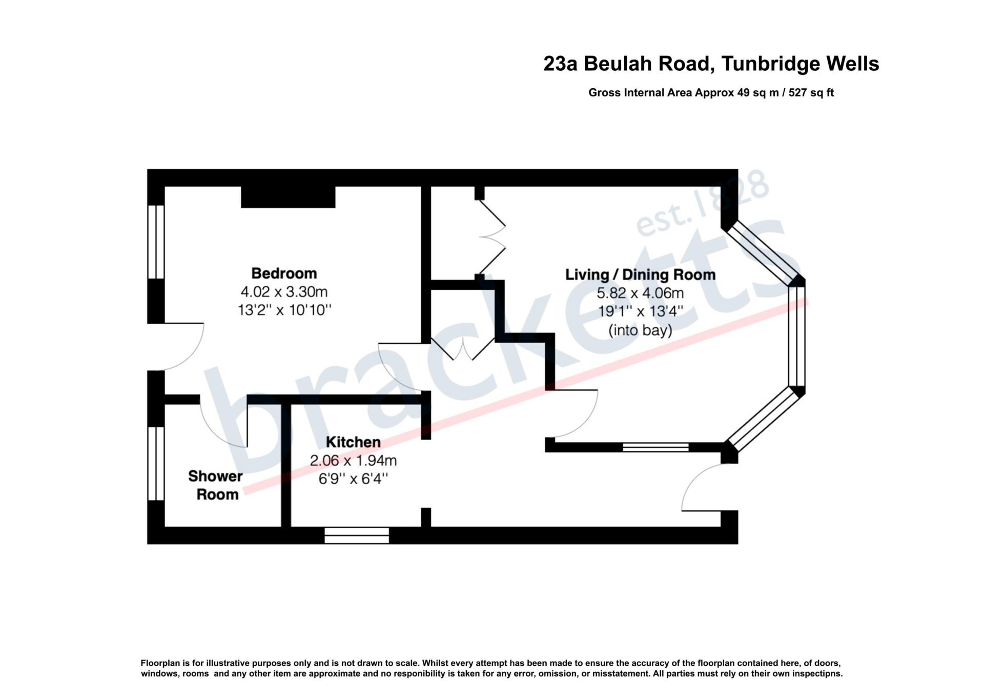 Enjoying a most convenient location within the highly regarded St James' area of Tunbridge Wells, being within just a few hundred yards of the individual retailers and eateries in Camden Road and a quarter of a mile from the Royal Victoria Place shopping centre and pedestrianised precinct. Access into Grosvenor & Hilbert recreation ground is a similar distance and the mainline railway station is about a mile away. This garden floor apartment forms part of an imposing double fronted Victorian building and the apartment benefits from its own private front door and small rear terrace, accessed from its bedroom. The property is thought to be in neat order throughout, has gas central heating and comprises an entrance hall, a good sized bay fronted reception room with a large storage cupboard, a separate kitchen with coloured door fronts, generous tiled splashbacks and integrated appliances. There is also storage off the hallway. Double bedroom with an en suite shower/WC and access to a private courtyard. The property has off road parking in front of the building for the use of the residents.