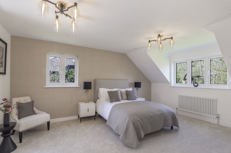Externally, further highlights include detached double garages, generous gardens, and the rare advantage of an additional paddock—offering potential for a variety of uses. The inclusion of an air source heat pump, supports energy efficiency and sustainable living. The development benefits from excellent road and rail links, with links to London within the hour and is situated close to a selection of coveted schools, making it perfect for families.