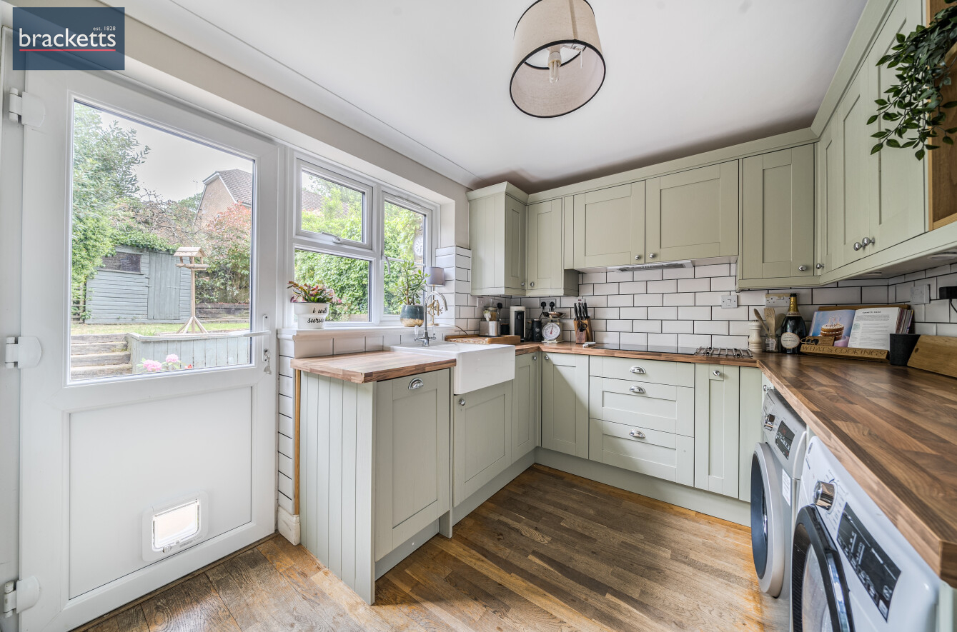 Bracketts are delighted to offer for sale this beautifully presented two-bedroom semi-detached home, situated on a popular cul de sac on the south side of Tonbridge. Internally the property comprises entrance porch, living room / dining room and kitchen to the rear overlooking the garden. Upstairs, there are two double bedrooms and a family bathroom. Outside there is a private garden to the rear with patio seating area and the rest laid to lawn. To the front there is a driveway, parking for an additional car and a single garage with power and lighting.