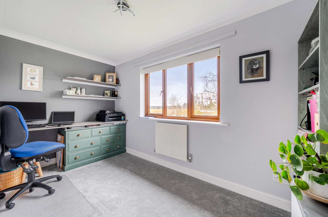 TO the first floor, the principal bedroom benefits from an en-suite, dressing room and attractive countryside views. There are three further well-proportioned bedrooms, a family bathroom, and a fixed ladder staircase leading to an attic room Ideal for a home office / hobby room or storage.