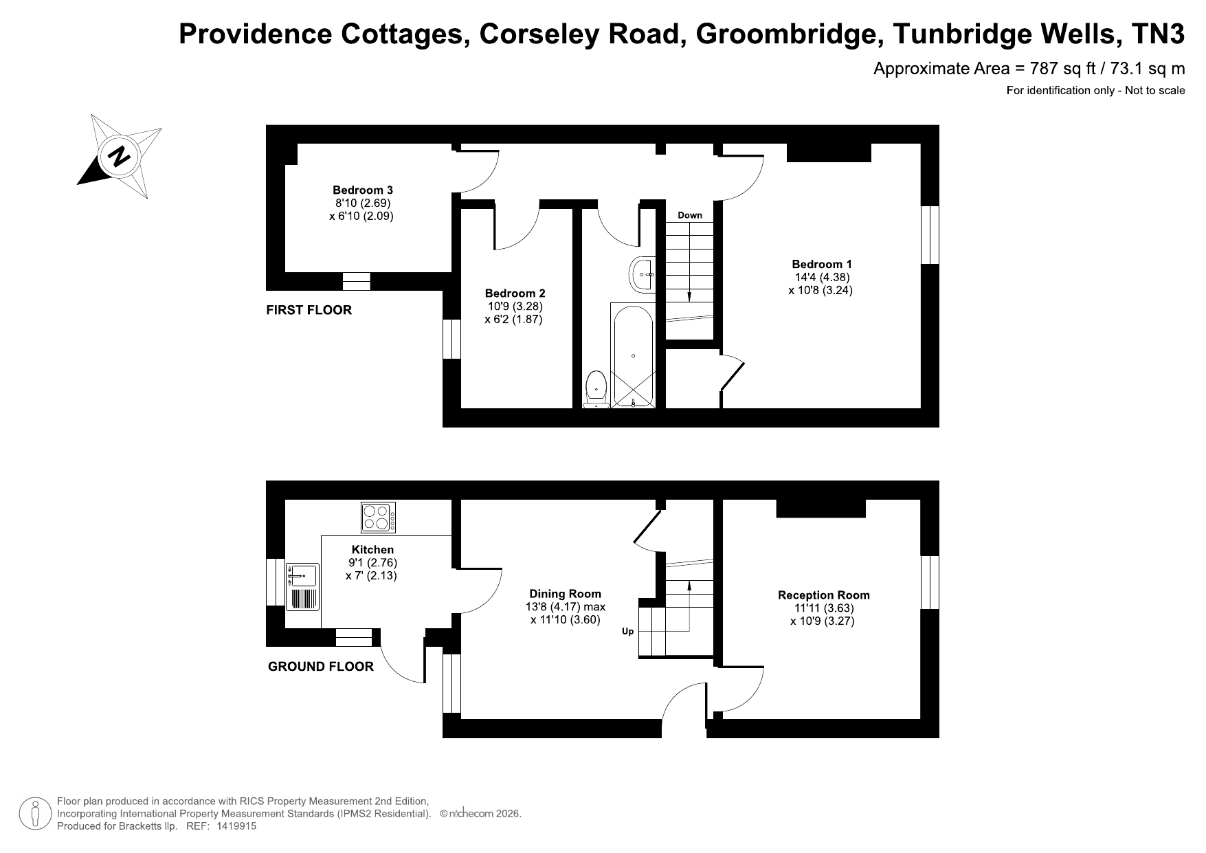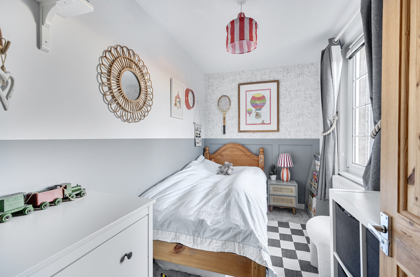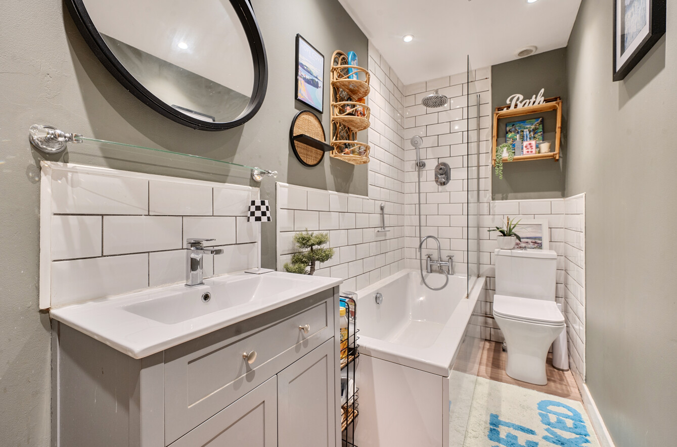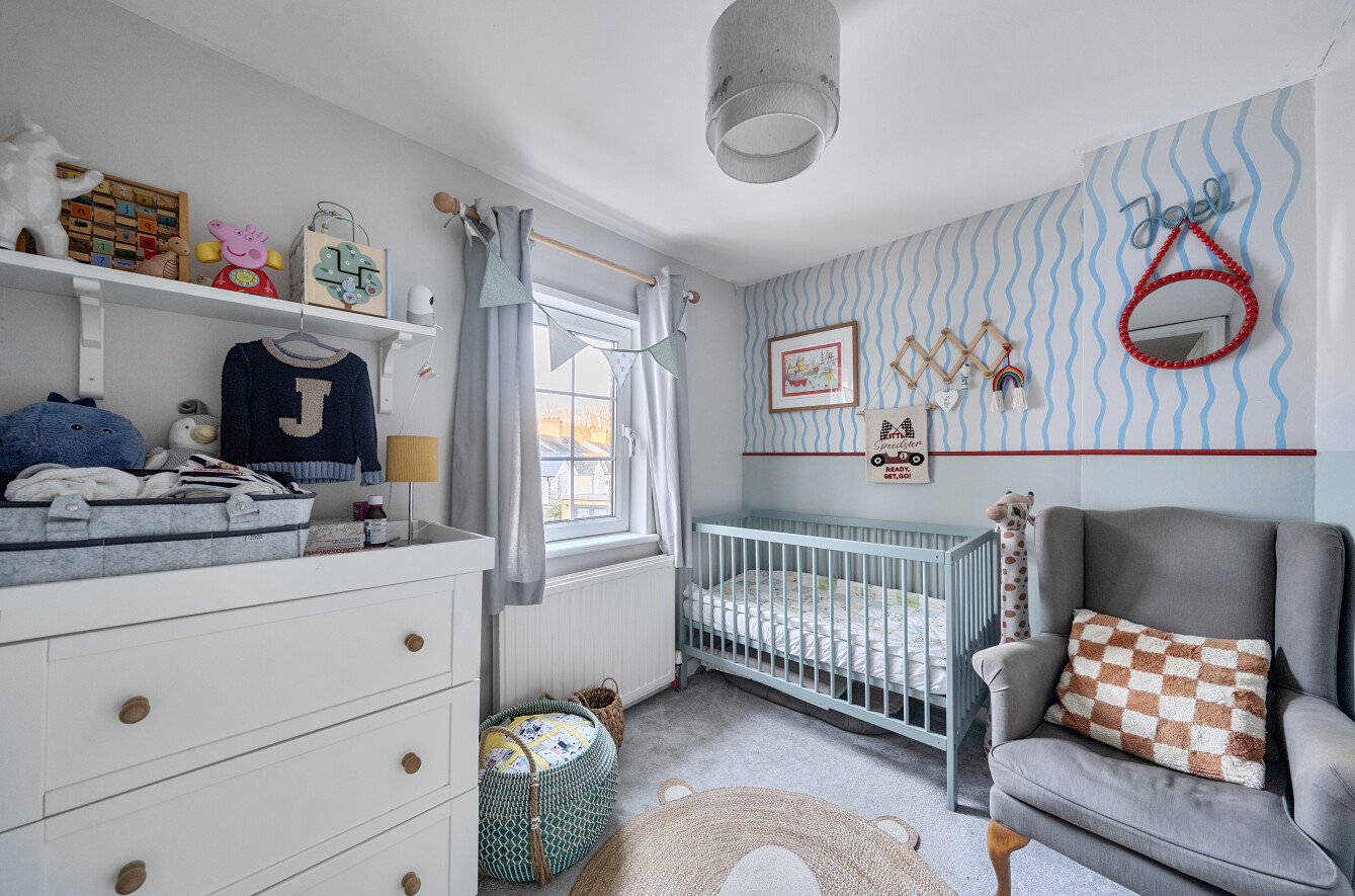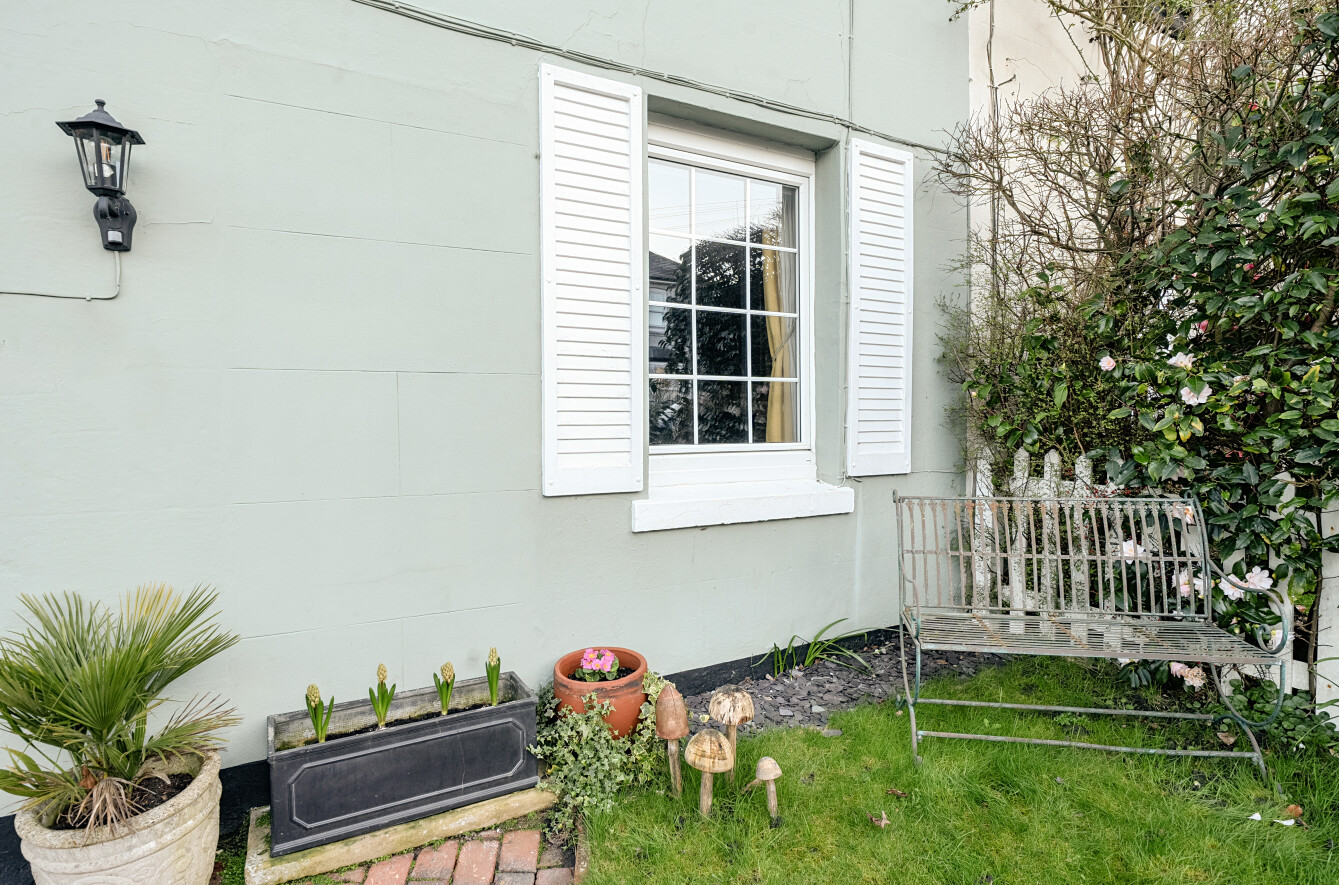 On the First Floor, there is a wide principal bedroom with a window to the front elevation and bulkhead storage above the stairs. The remaining first floor accommodation is cleverly divided to provide two further bedrooms and a bathroom and WC, which has a modern white suite, with chrome fittings that comprises a WC, bath with generous tiling and shower fitment, and a washbasin. Outside there is a small front garden behind a picket fence. Shared access to the side of the cottage affords a gate to the rear garden which is an attractive feature of the property and of a good depth with an outbuilding, lawns, beds and borders.Â