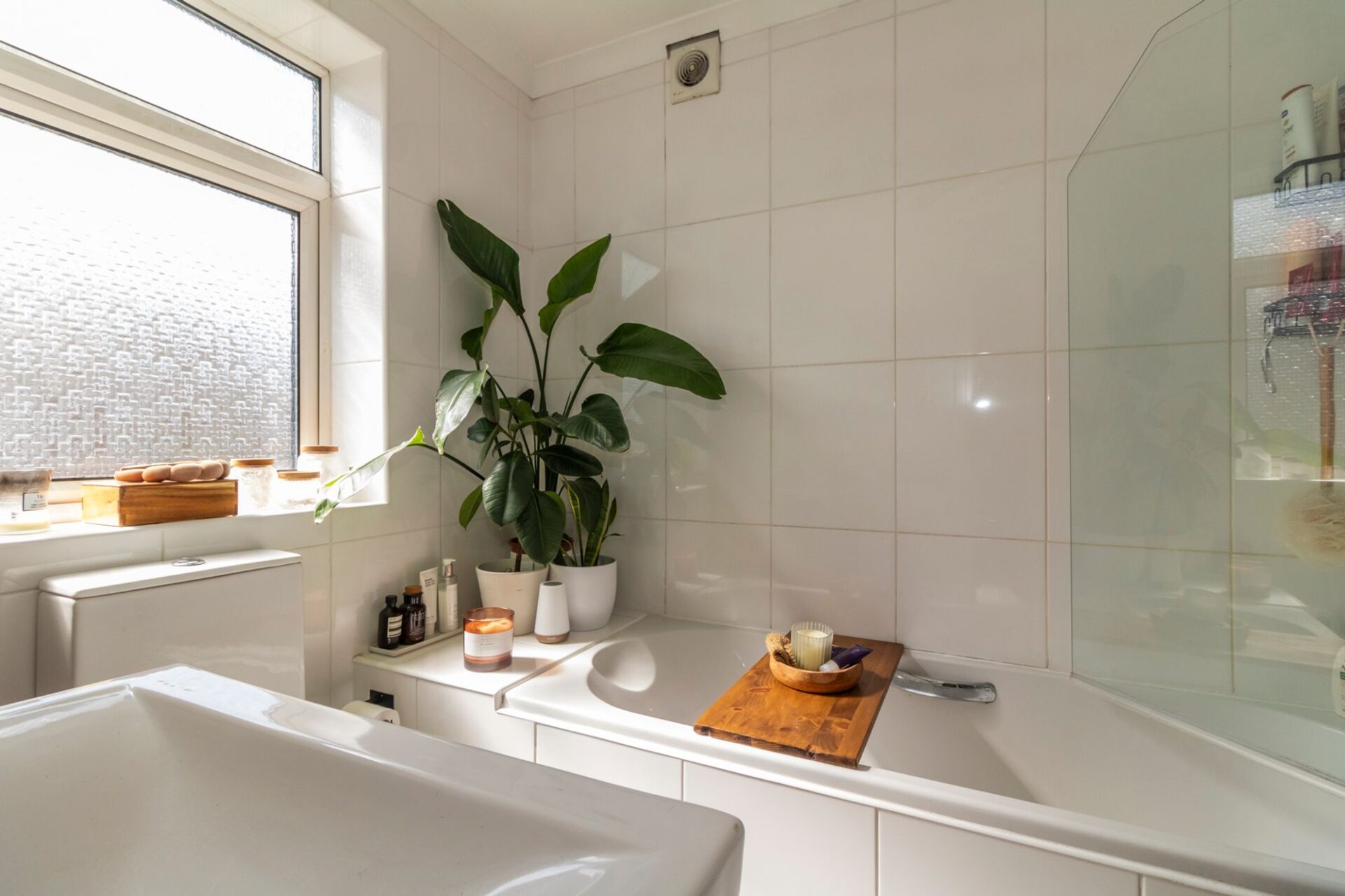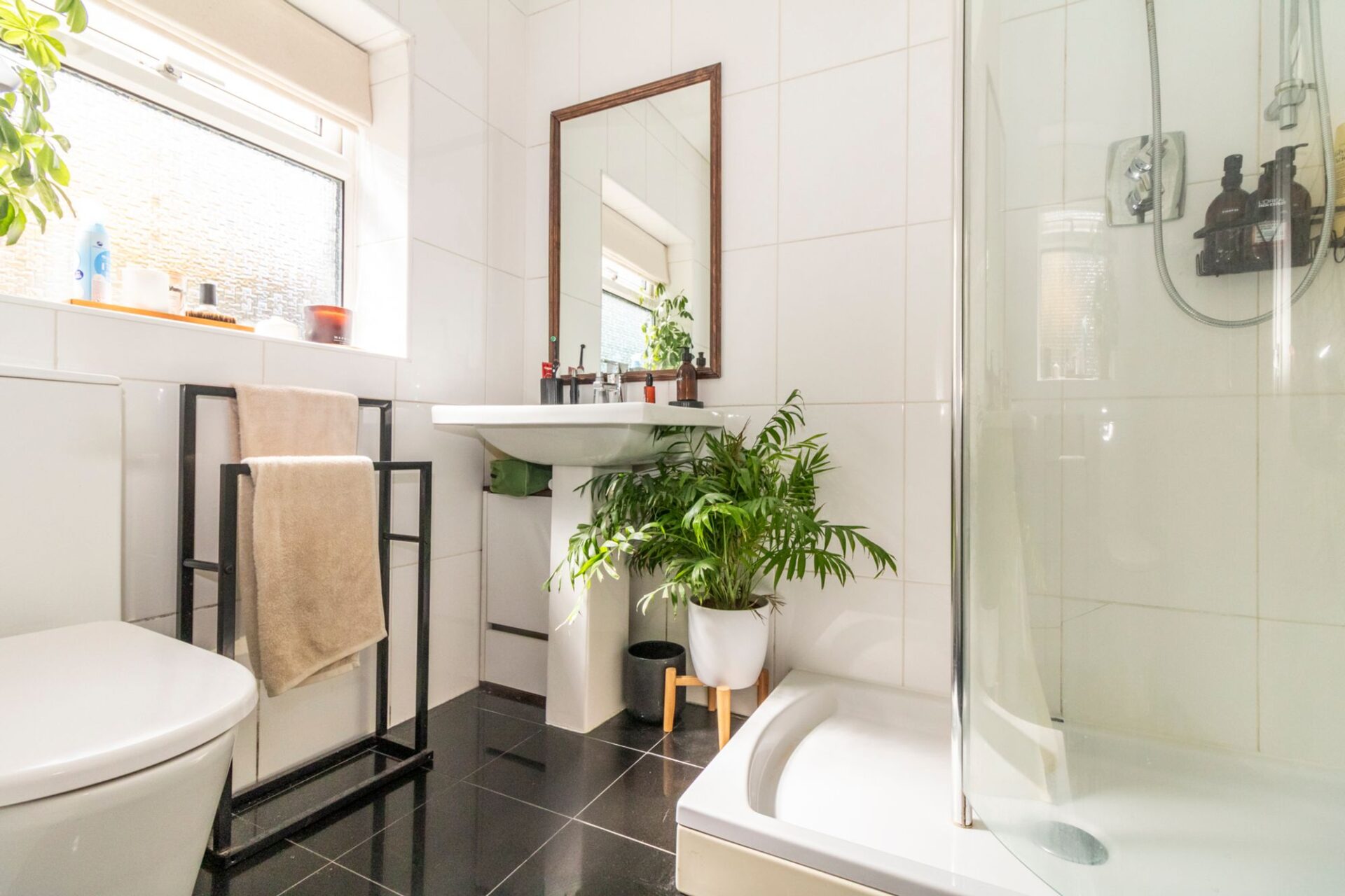There is a downstairs shower-room whilst on the first floor there is a bathroom with a shower over the bath.