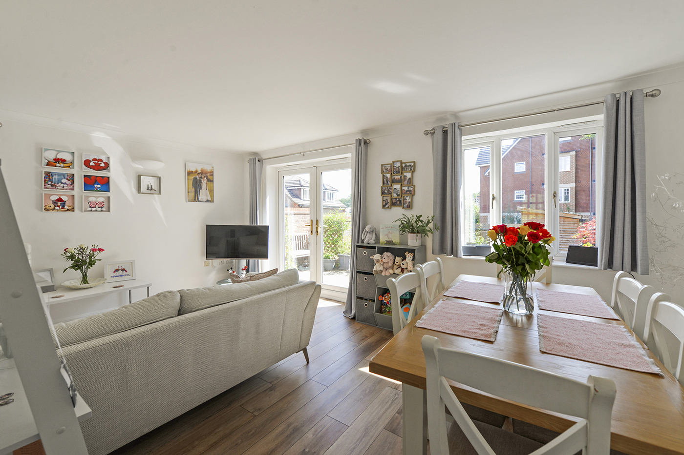 Internally the property comprises entrance hall, cloakroom WC, modern fitted kitchen and lounge/diner. To the first floor there are three bedrooms and a family bathroom with the primary bedroom adjoining an ensuite. Externally there is a landscaped garden, with decked seating area and the rest laid to lawn. There is a driveway to the front with space for two cars. We recommend viewing at your earliest convenience.