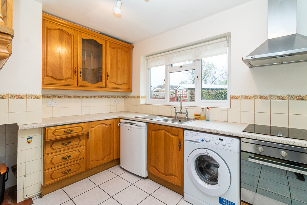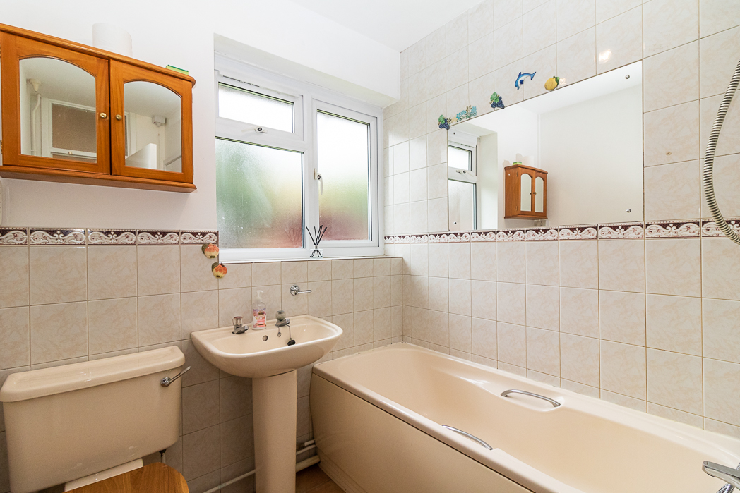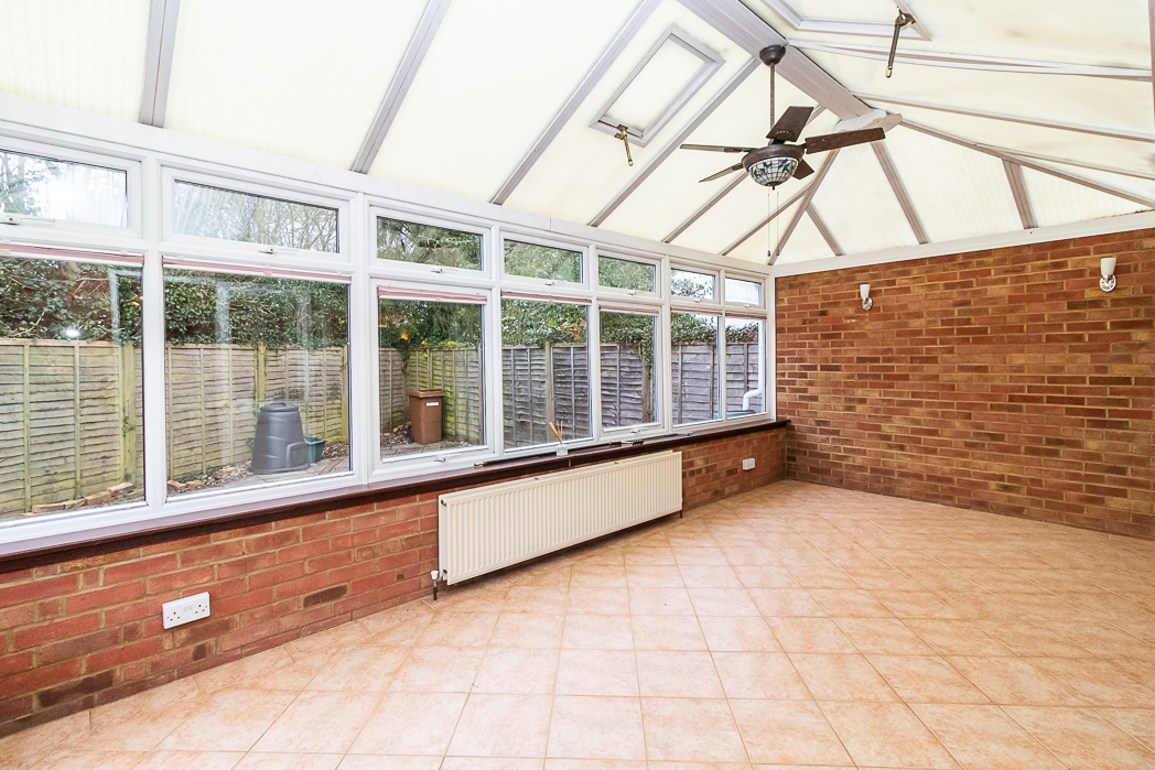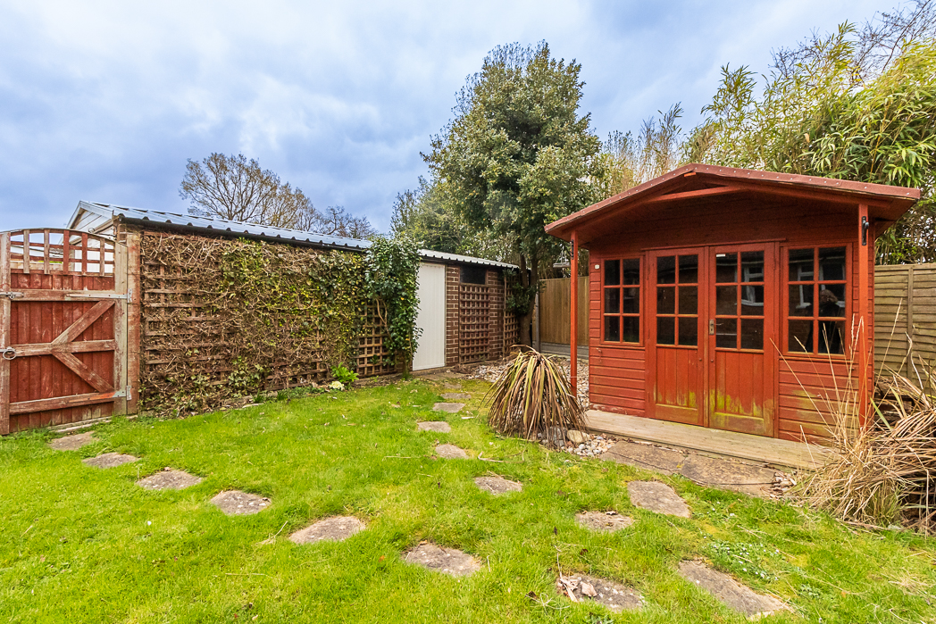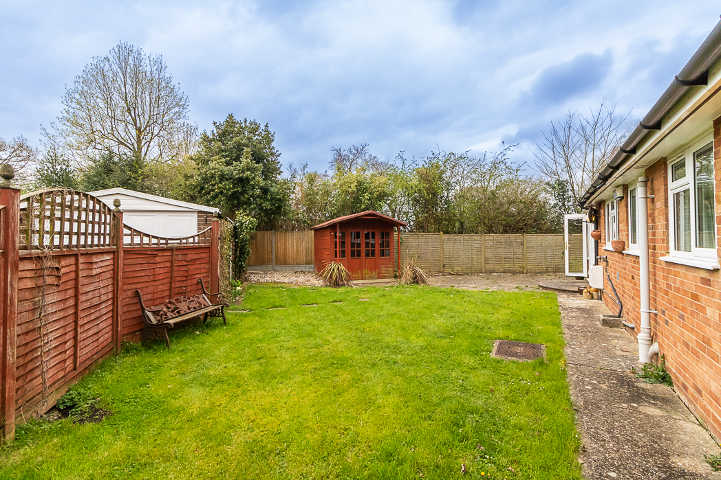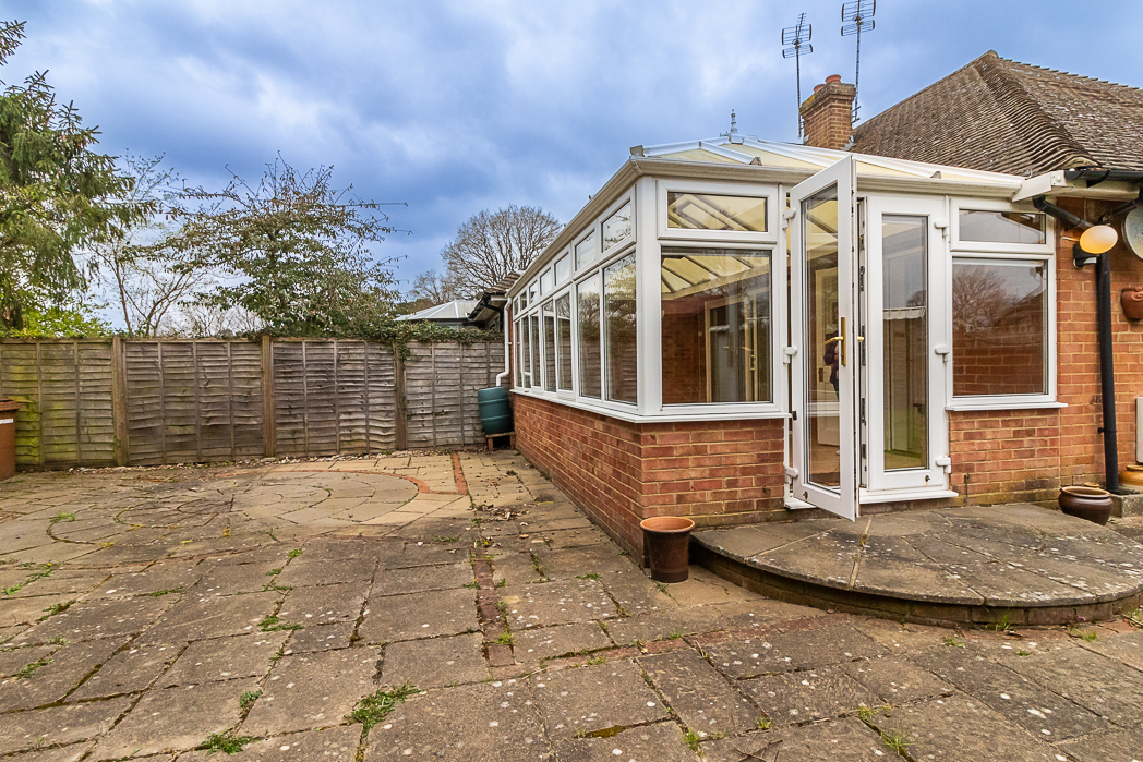 Offered for sale with the the benefit of no onward chain, this semi detached bungalow occupies a quiet corner plot at the head of the cul-de-sac in an excellent location in the much favoured Culverden Down area of Tunbridge Wells. The entrance porch opens to the hallway with access to bedroom one, overlooking the front garden with a large bay window with feature stained glass panels. There is a second bedroom which could also be used as a good 'work from home' study or as a dressing room. A family bathroom with window to the side and an airing cupboard with boiler and hot water tank. The living room is adjacent to the kitchen and has patio doors to the conservatory, which spans the width of the house and provides further reception space that overlooks the rear garden. To the front is a long driveway leading to the large detached garage and a lawned area with flower borders around the bay window. To the side is a good sized lawn with a summer house and a patio garden at the rear immediately behind the conservatory. Due to its position and plot size, there is potential to extend with a loft conversion and / or with a side or rear extension (subject to the necessary local authority consents).