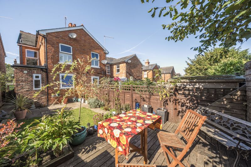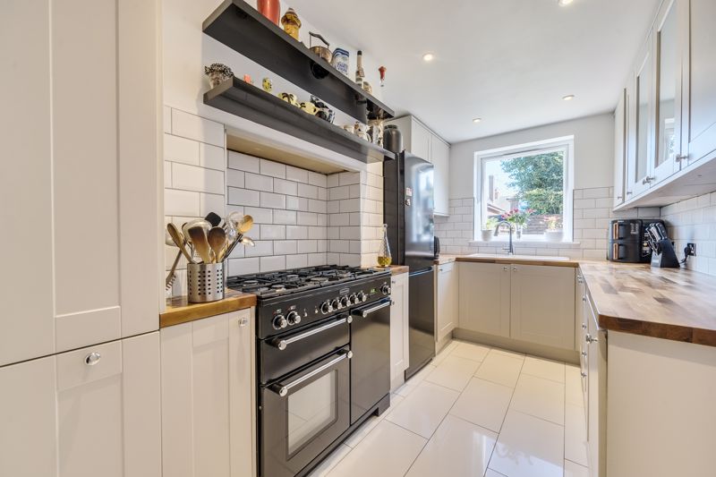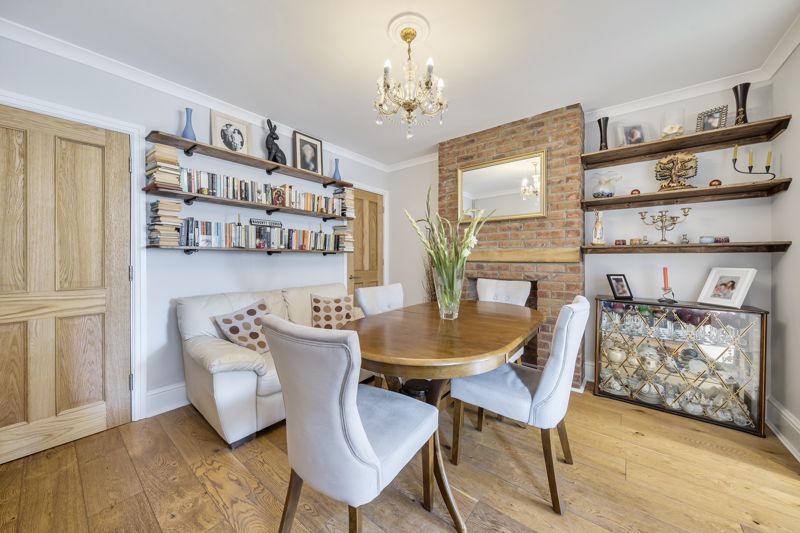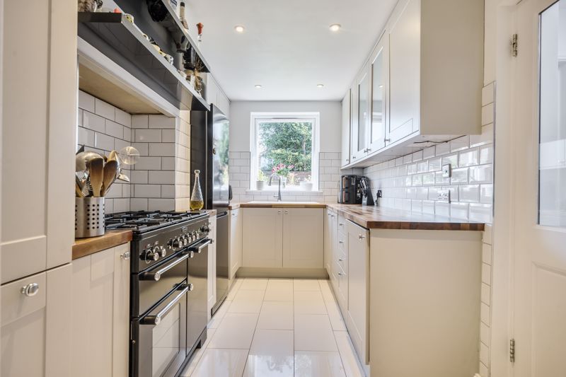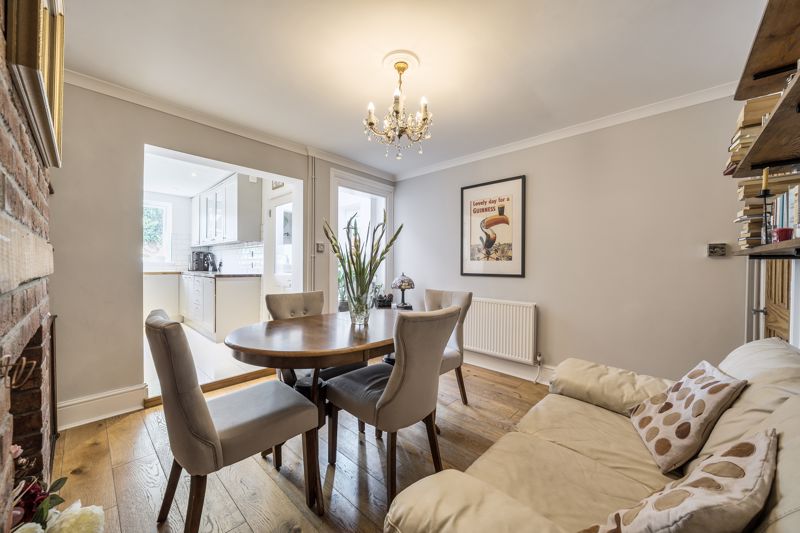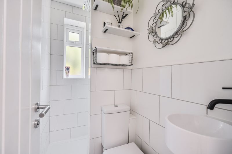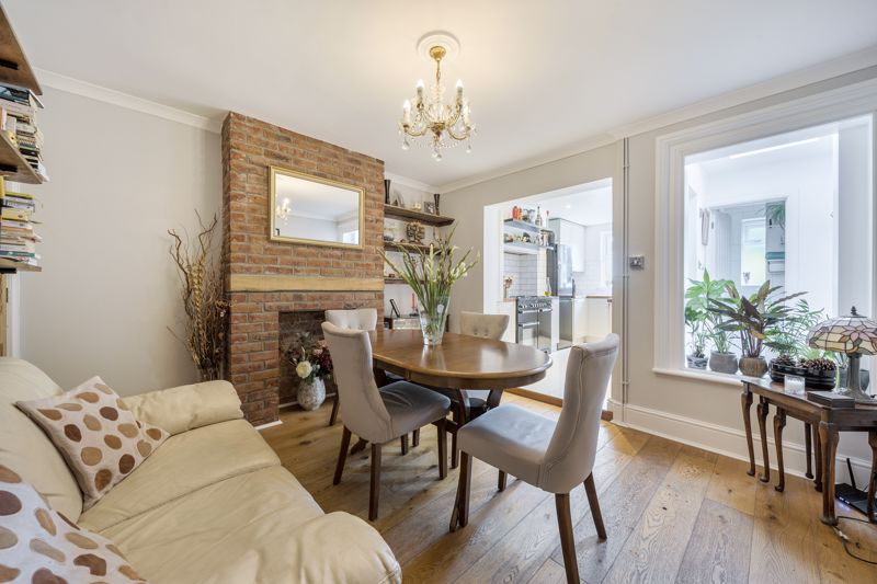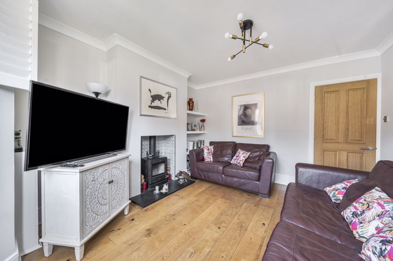 Occupying an enviable position within a few hundred yards of the comprehensive amenities and shops available in Rusthall High Street, the road itself is served by a bus stop with regular buses directly to town. This bay fronted semi-detached house has been comprehensively redecorated and enhanced by the current owner with the provision of a ground floor extension and shutter blinds throughout. The property also benefits from double glazing and a gas fired central heating controlled via a smart eco Google Nest system. The accommodation comprises Ground Floor, Entrance Lobby with stairs up, bay fronted Sitting Room with wood burner. Dining Room with internal window to rear, large understairs storage, and an exposed brick feature fireplace. Both reception rooms have freshly restored wooden flooring. The dining room leads directly to a fitted Kitchen with tiled flooring, timber worktops, a range style cooker, assorted base units and wall cupboards, integrated appliances including a dishwasher and washing machine, and generous areas of wall tiling. The newly built extension comprises a side lobby with skylight complementing the internal window of the dining room allowing for plenty of light. The area is used as an entrance porch with space for shoes and coats, with a door leading to the walk-in rainwater effect Shower/WC and wash basin, with black & chrome fittings. Tiled flooring throughout with underfloor heating. First Floor comprises three bedrooms and the house bathroom. The first bedroom is to the left of a sealed brick exposed wall. It has a pretty feature fireplace, with a double fitted wardrobe to one alcove and access to the generous bulkhead storage above the stairs. The second bedroom lies to the back of the property with similar dimensions, another larger double fitted wardrobe and feature fireplace. The third, smallest bedroom is adjacent to the second, currently used as an office, offering plenty of sunlight with room for a bed and storage. The upstairs bathroom consists of floor and generous wall tiling, a chrome heated towel rail, bath with a separately installed overhead electric WiFi operated shower, and W/C with wash basin. The current owners have relocated the loft hatch from the top of the stairs to the upper hallway, doubling the size of the opening with a folding ladder that accesses the loft space which houses the boiler. This is the largest space in the house, and has been insulated and fully boarded with lighting and electricity. Currently used as storage it offers the potential to be transformed into further living space, such as a master bedroom with ensuite, STPP. There is a small front garden with pathway that extends to the side of the house and accesses the rear garden via a gate with a stone patio seating area adjacent to the house, with lawns and borders of mature plants and a pathway leading to a raised area of decking at the back with privacy provided by a large tree. Presented in immaculate condition and ready to move into, viewing highly recommended.