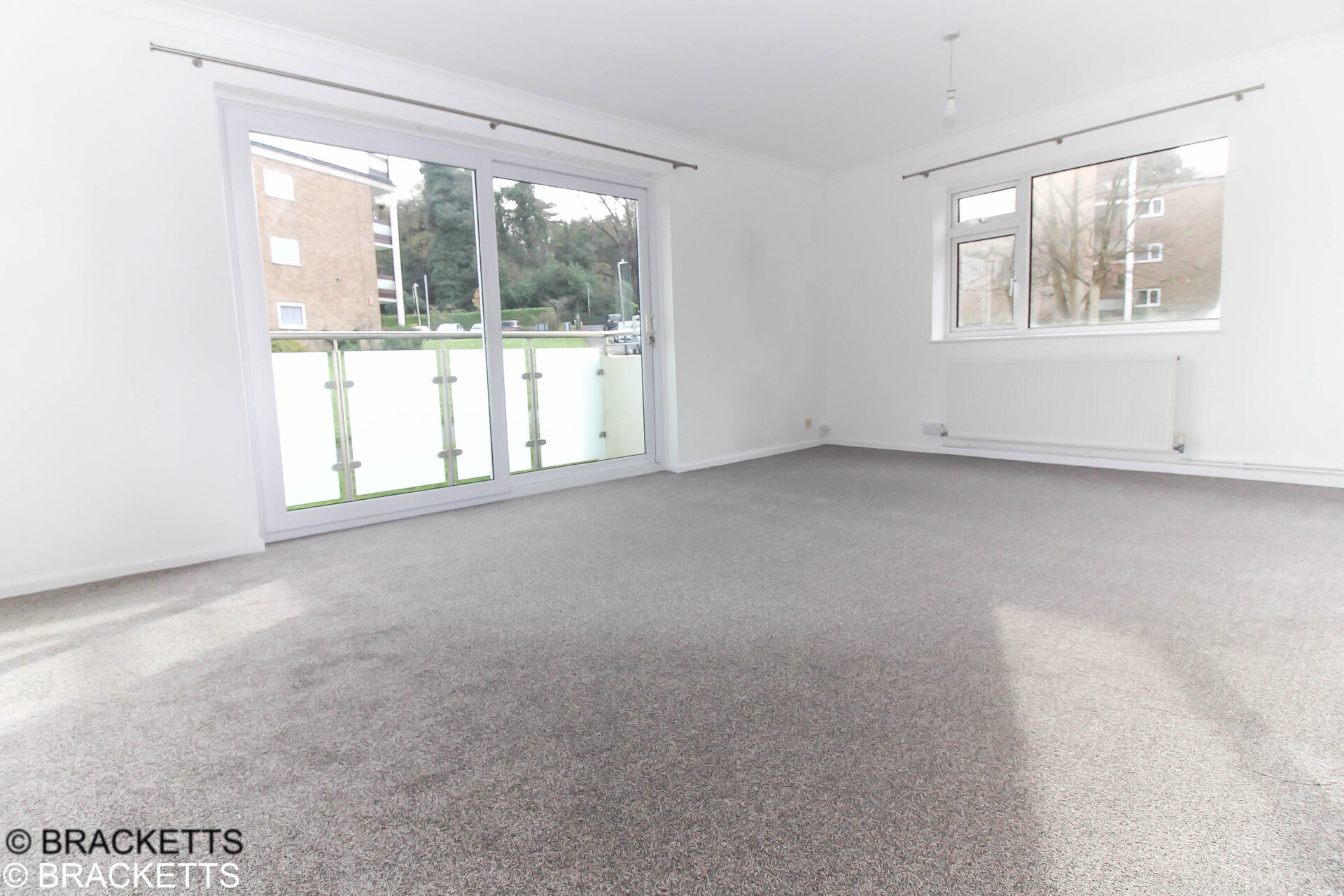 A beautifully presented two-bedroom flat offering a harmonious blend of modern style and every-day practicality, this property is designed to impress. The spacious reception room is flooded with natural light from large windows and sliding glass doors, which seamlessly connect the indoors to a private balcony - an inviting space perfect for relaxation or entertaining, with serene views over a well-maintained communal green area. The interiors throughout are finished in a neutral palette with fresh, new carpeting, providing a versatile and contemporary backdrop ready for personalisation. Both bedrooms are generously proportioned, each featuring extensive built-in storage with sleek white cabinetry, maximising space efficiency while maintaining a clean, uncluttered look. The flat’s layout ensures a bright and airy ambience in every room, thanks to ample windows and thoughtful design.