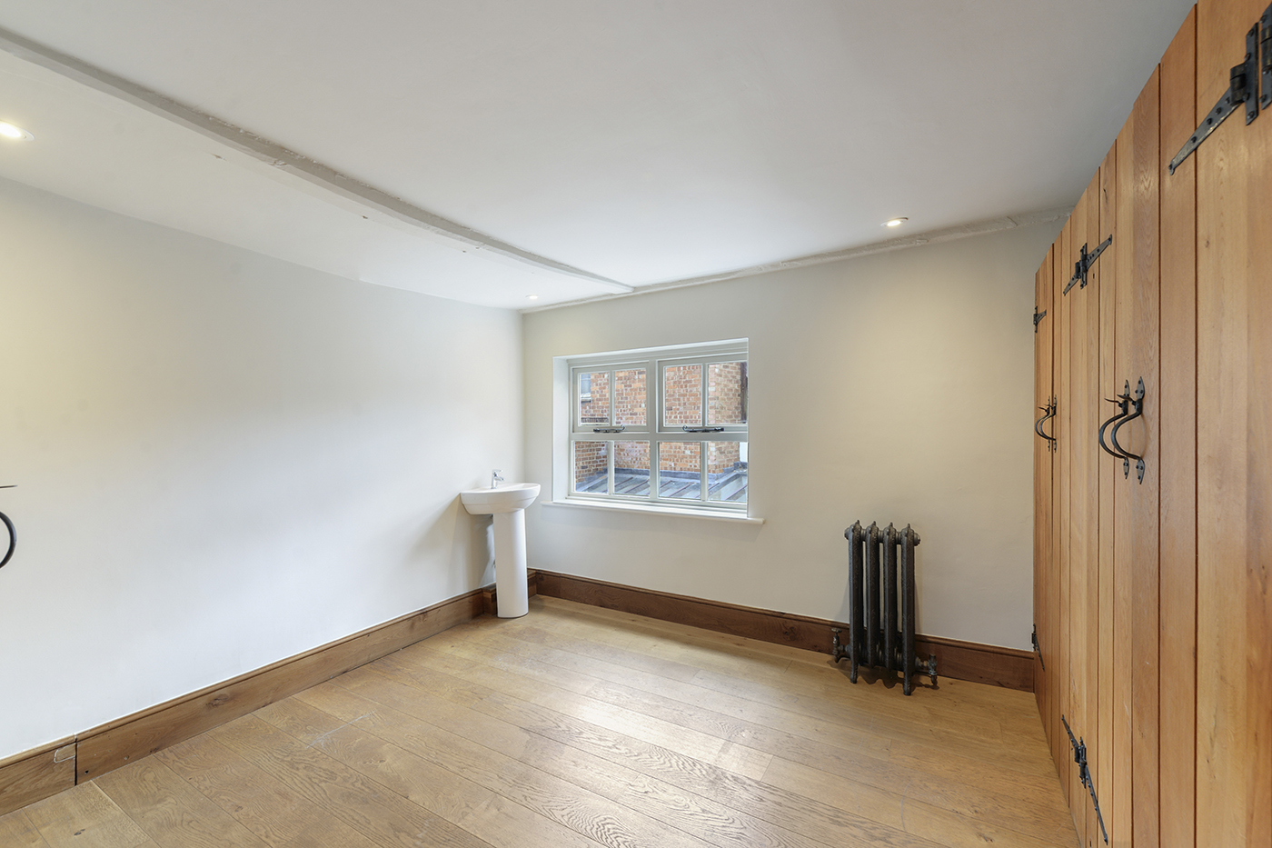Internally the property comprises, entrance hall with terracotta tiled flooring, sitting room with feature fireplace & exposed wooden beams, dining room with feature terracotta tiled flooring & further exposed beams, modernised solid wood kitchen with integral appliances & ceramic butler sink, inner lobby leads to study area / playroom. The dining room, kitchen & study all look over and access the inner courtyard with raised brick planters.