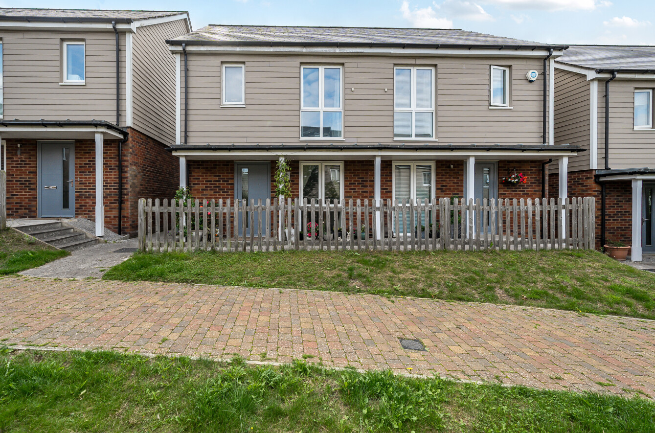 Price Range: £400,000 - £425,000; Bracketts are delighted to offer for sale this beautifully presented two-bedroom semi-detached home set away from the road and ideally located within the sought-after Knights Park development. Offering contemporary living throughout, the property features a bright entrance hall with built-in storage cupboard, a downstairs W.C, and a stylish open-plan kitchen/dining area with integrated appliances. The rear of the home boasts a spacious lounge with double doors opening onto the private landscaped garden, which includes a patio side access. Upstairs, there are two generous double bedrooms both with fitted storage and there is a modern family bathroom. Additional highlights include allocated parking at the rear, access to local amenities featuring a convenience store and highly regarded primary school, as well as excellent transport links via the A21 and nearby retail and leisure facilities. Viewing is highly recommended.