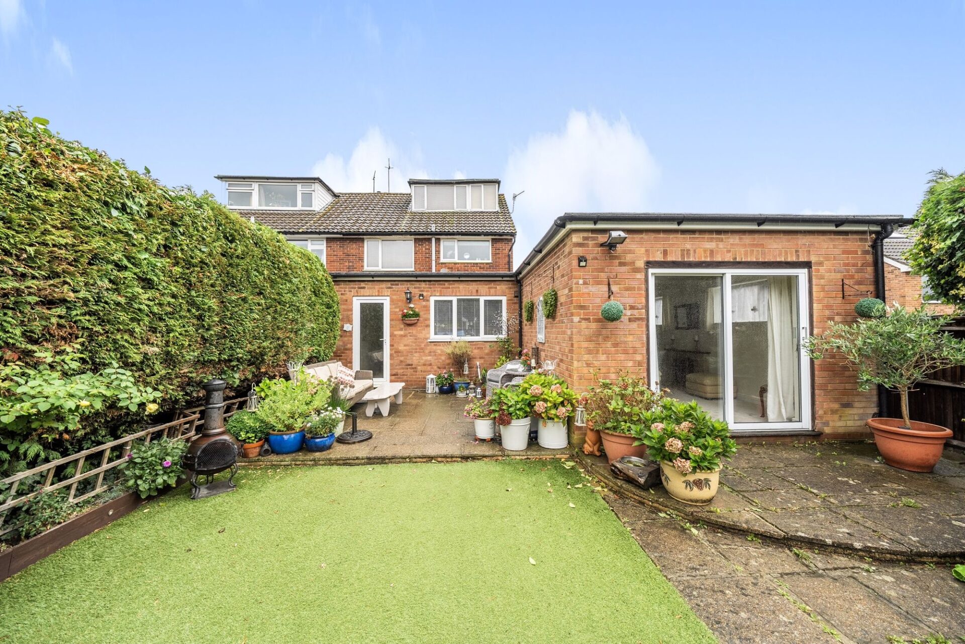 Externally the rear garden has been landscaped for low maintenance and artificial lawn, generous patio areas, and mature hedges screening. To the front, the property benefits from a spacious driveway with parking for multiple vehicles..