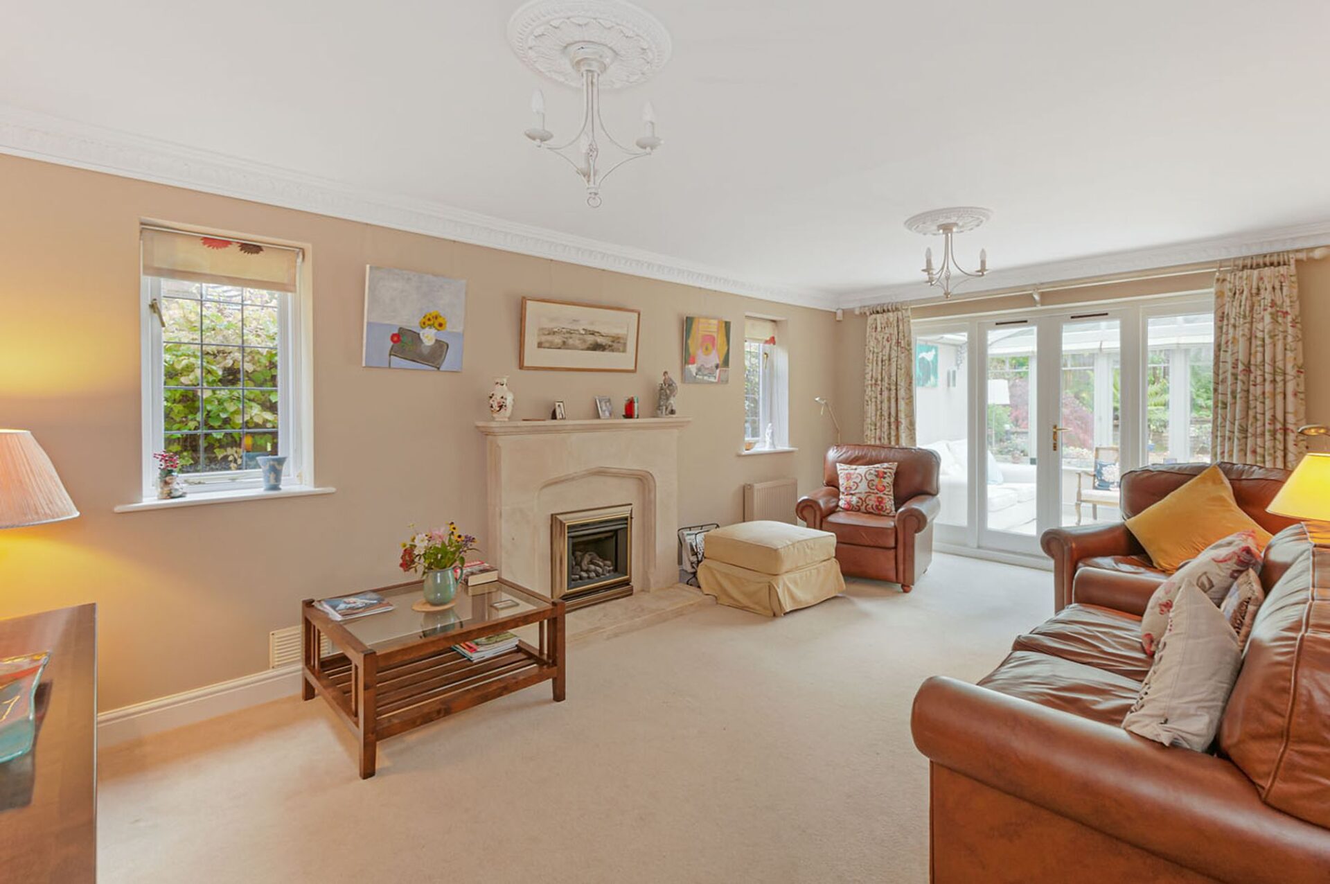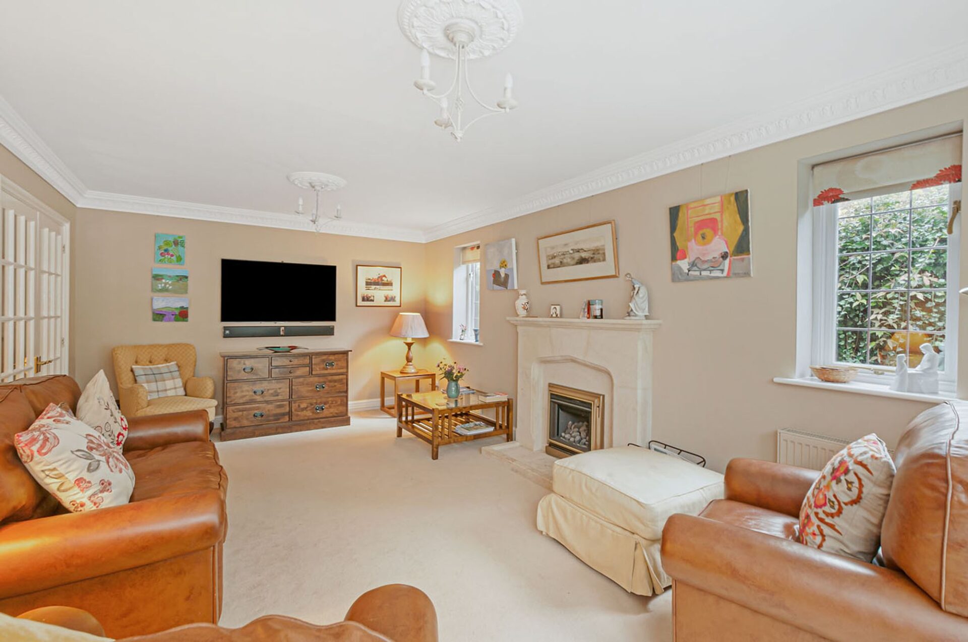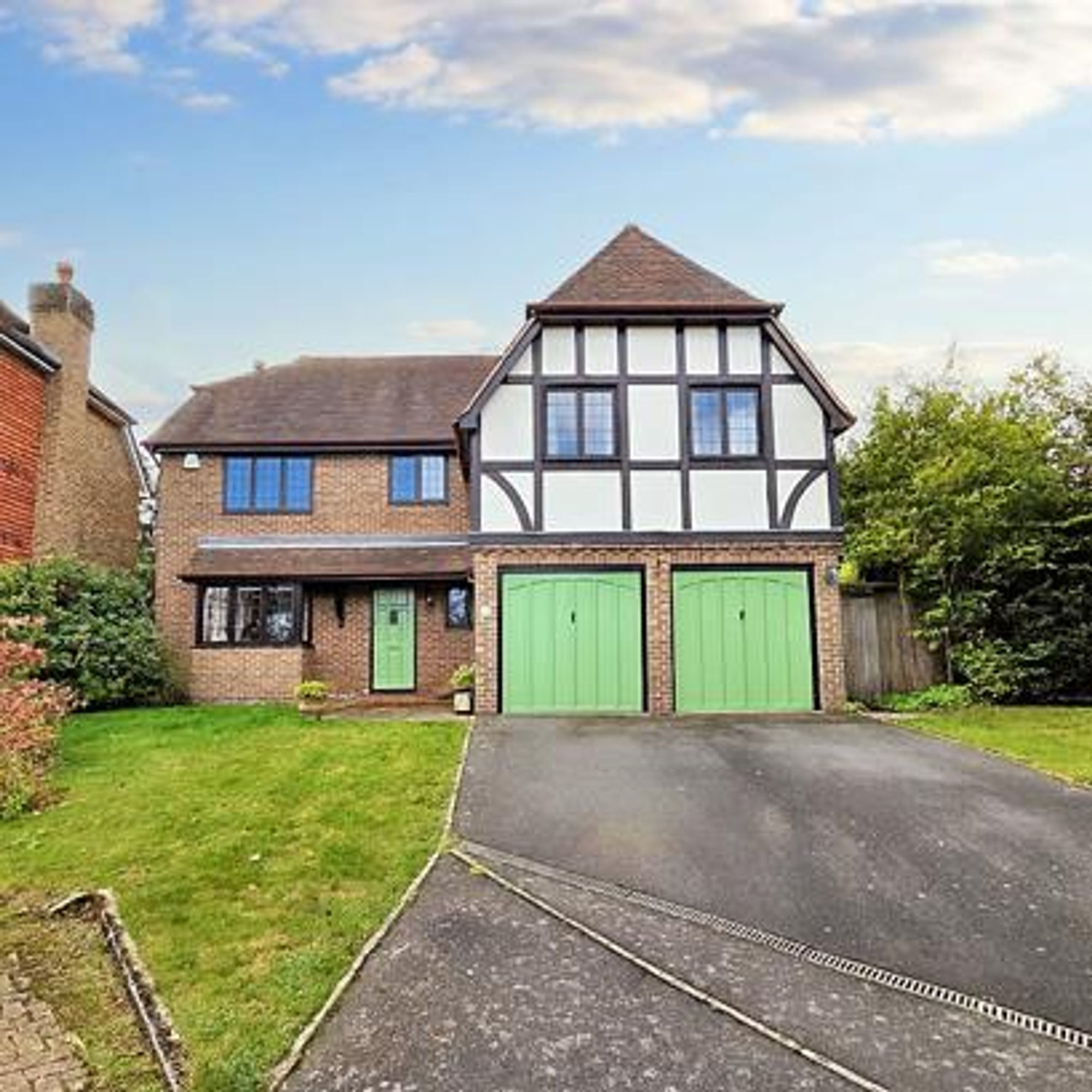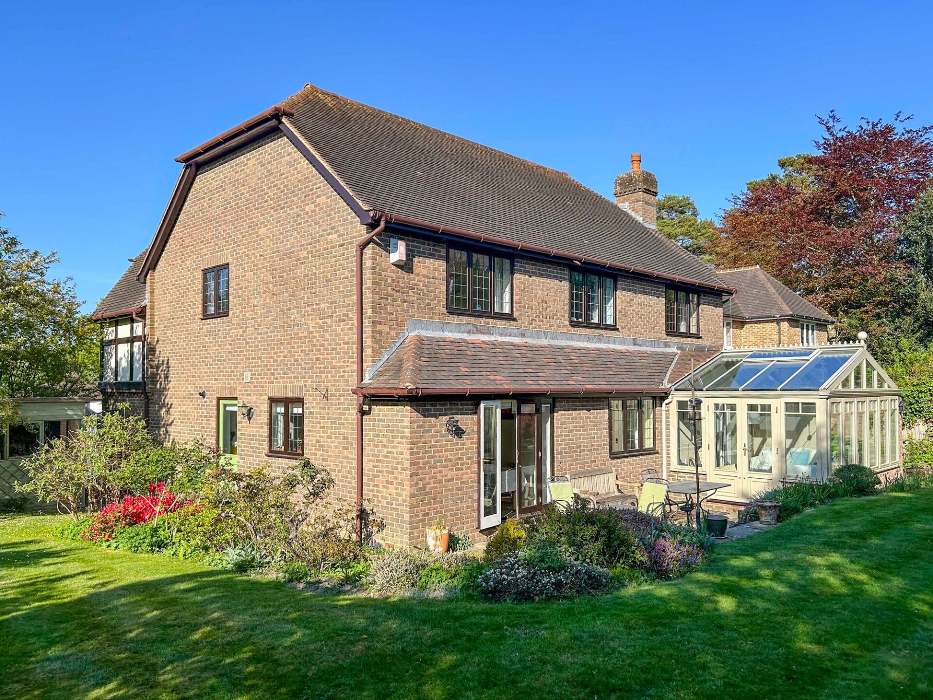 Forming part of an exclusive cul de sac of just six properties originally constructed by Berkeley Homes, this generously proportioned detached house has a striking Tudor style gable to its front elevation and has been enhanced by the addition of a spacious conservatory to the rear. The accommodation, which has gas central heating and double glazing comprises, to the ground floor, spacious hallway, cloakroom/WC, a study, sitting room minster-style fireplace with mantel and hearth, conservatory with a pitched glazed roof, underfloor heating and doors to garden, dining room, kitchen breakfast room with underfloor heating, hand painted wooden units, L-shaped suite of granite work service inset with sink and AEG induction hob, integrated appliances, double oven in housing unit with adjacent fridge freezer, pantry cupboard, twin aspects and double doors to rear garden, utility/laundry. Upstairs is a generous landing with hatch to loft and airing cupboard. The principal bedroom has fine views from the front elevation, assorted recess wardrobe cupboards and a spacious en suite shower room. There is a second bedroom with an en suite shower and three further bedrooms plus a family bathroom and WC. A generous driveway provides access to an integral double garage with twin ‘up and over’ doors, light and power. The rear garden is an attractive feature of the property and enjoys a southerly aspect with wide paved seating areas, a wrap-around lawn and a pretty timber insulated, double glazed studio/home office with light and power plus a separated garden shed.