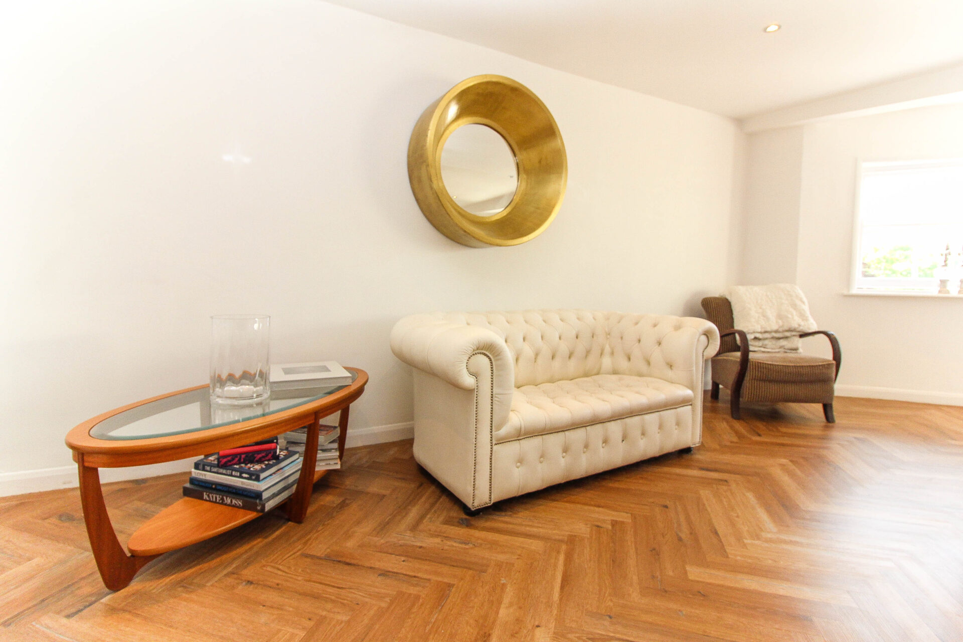 - Elegant herringbone Amtico flooring throughout entrance and living area