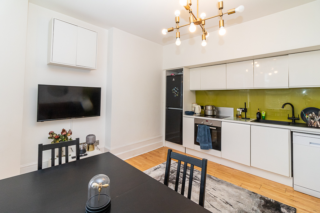 This well presented apartment is approximately three-quarters of a mile from a mainline railway station that provides fast commuter services to London in under an hour. There is parking for residents (unreserved) at the rear. This apartment has gas central heating. There is a large bay window in the reception room with an open plan fitted kitchen. The smaller bedroom has a large arch top window to the front and the main bedroom has a large window to the side. The shower room is fully tiled, and has a modern white suite.