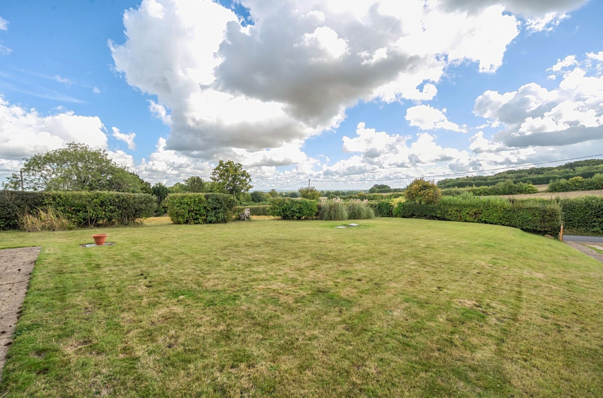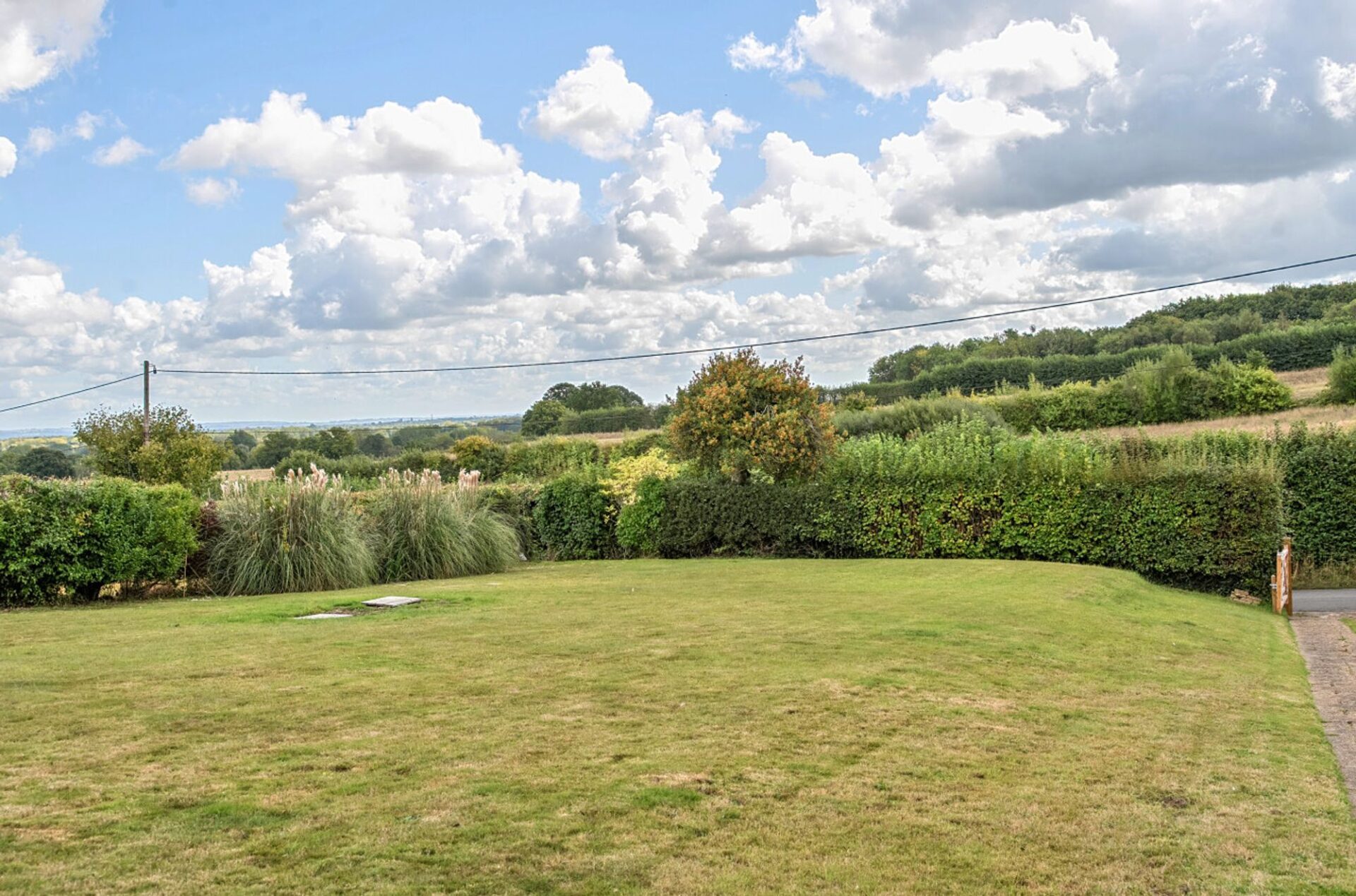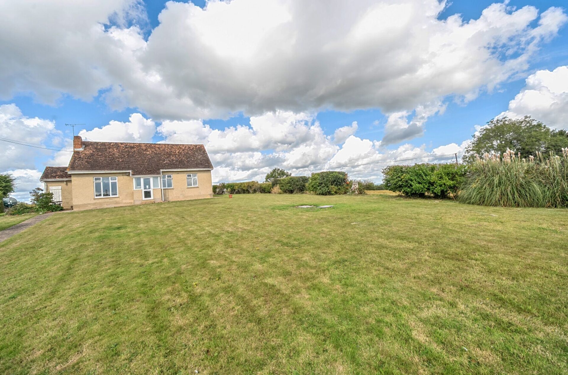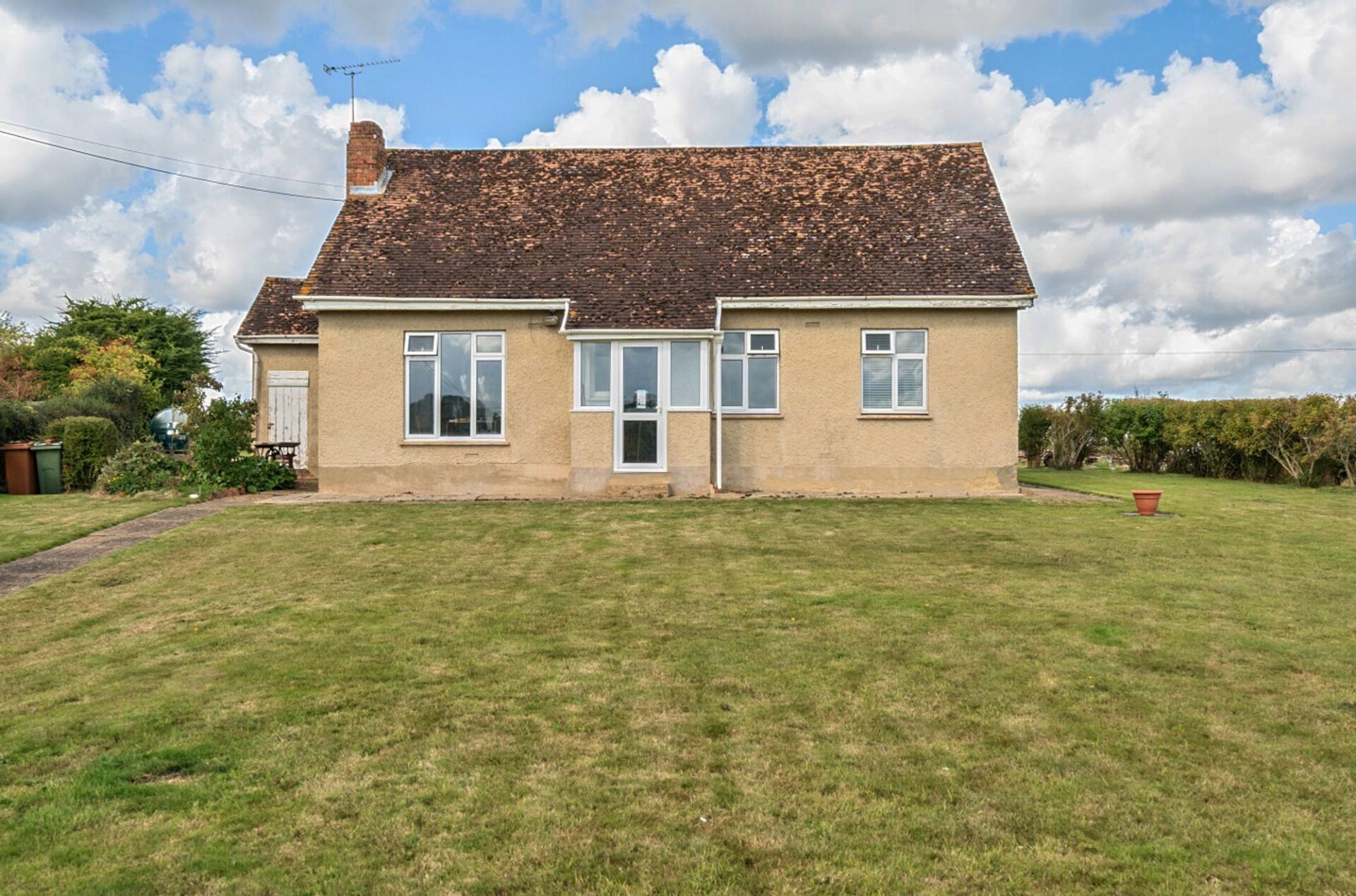 The property sits within a garden measuring approximately 0.435 of an acre, primarily laid to lawn with mature hedging at the front. A driveway provides access to the house and offers generous off-road parking with space to create more if required.