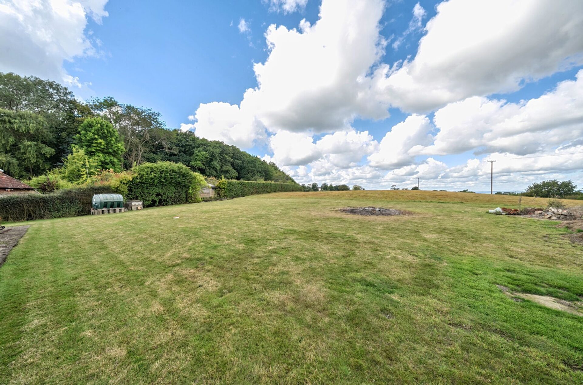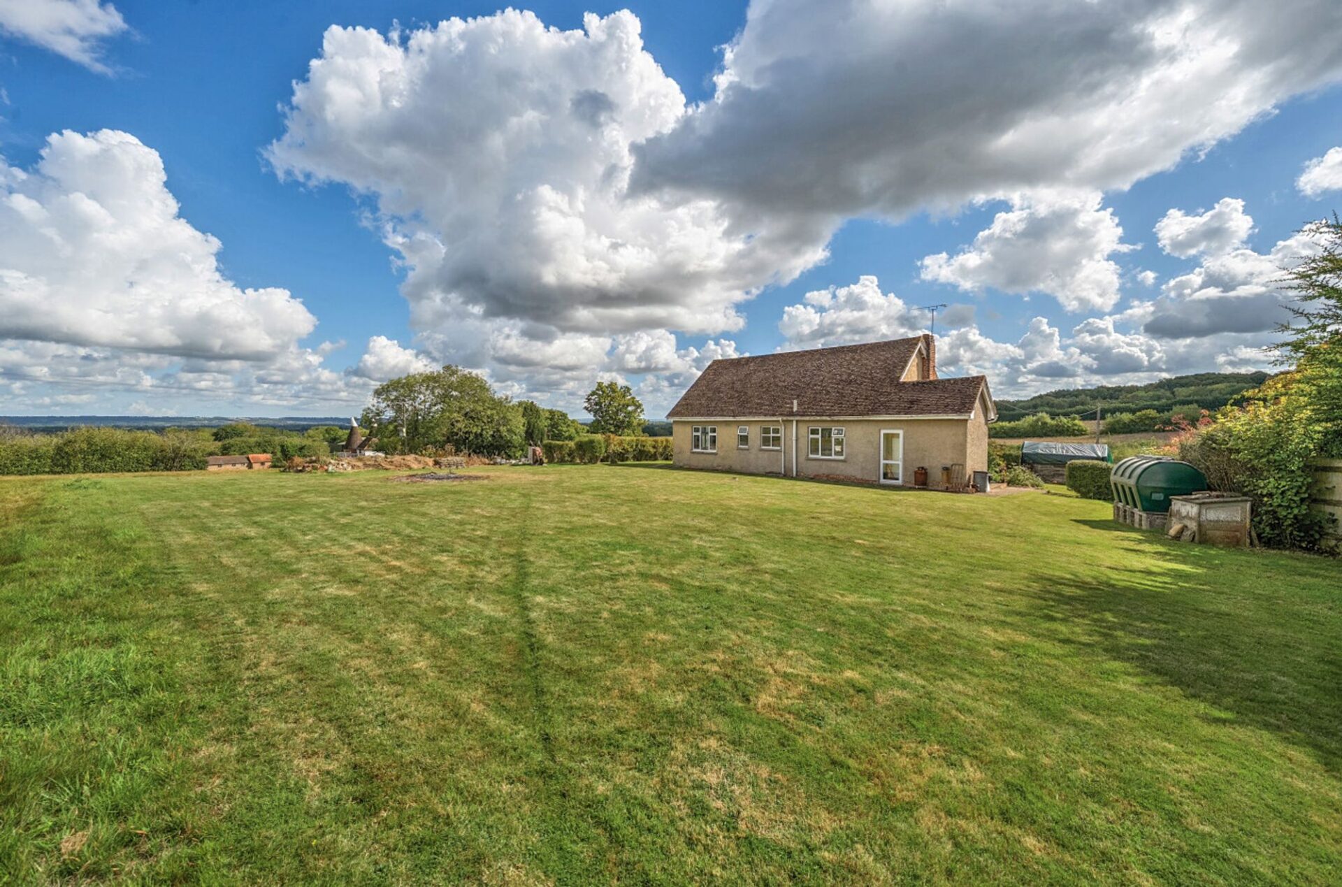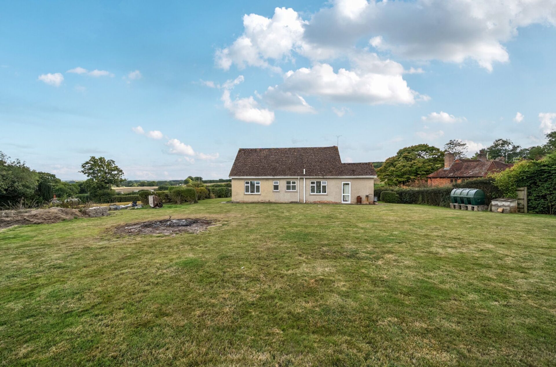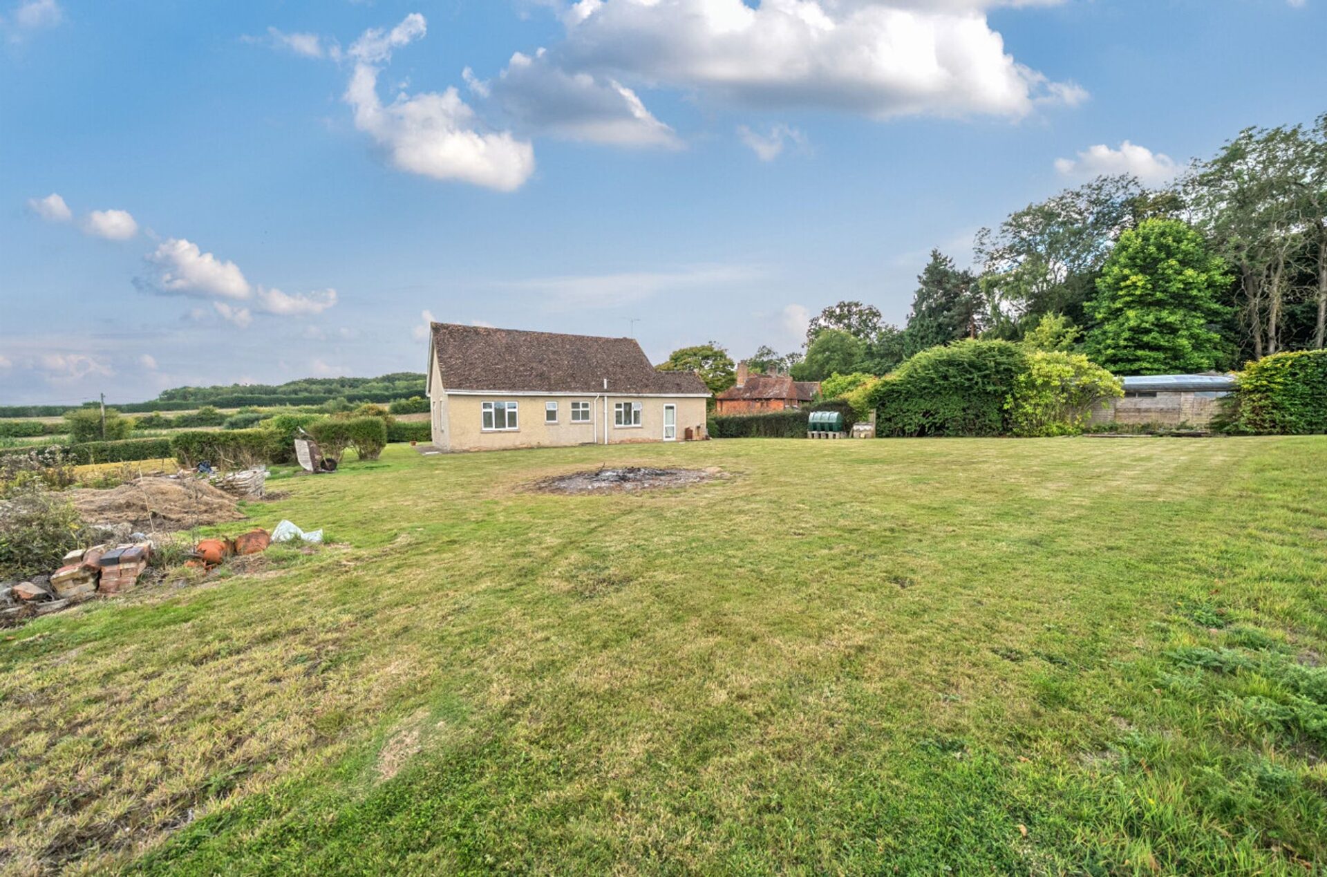 The property sits within a garden measuring approximately 0.435 of an acre, primarily laid to lawn with mature hedging at the front. A driveway provides access to the house and offers generous off-road parking with space to create more if required.