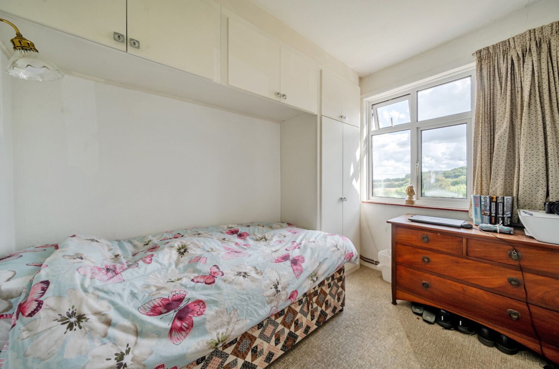 Inside, the accommodation includes a bright sitting room with a fireplace and a large front-facing window to take in the stunning outlook. The kitchen enjoys lovely views over fields to the rear. A central hallway leads to three well-proportioned bedrooms and the family bathroom. In addition, there is a useful lobby/utility area off the kitchen and a store room.