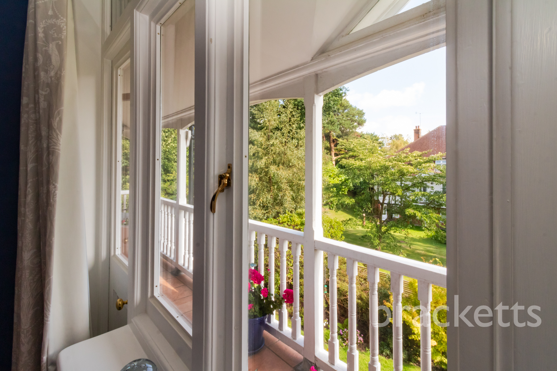 Located on the first floor of this magnificent substantial detached Edwardian home, nestling in mature gardens and set well back from the road, this apartment is in excellent decorative order. A particular feature is the exclusive use of a wide and spacious covered balcony which is accessed both from the bedroom and the reception room, that has space for a bistro table and chairs and overlooks the communal rear lawn. There are two allocated parking spaces at the front of the property.