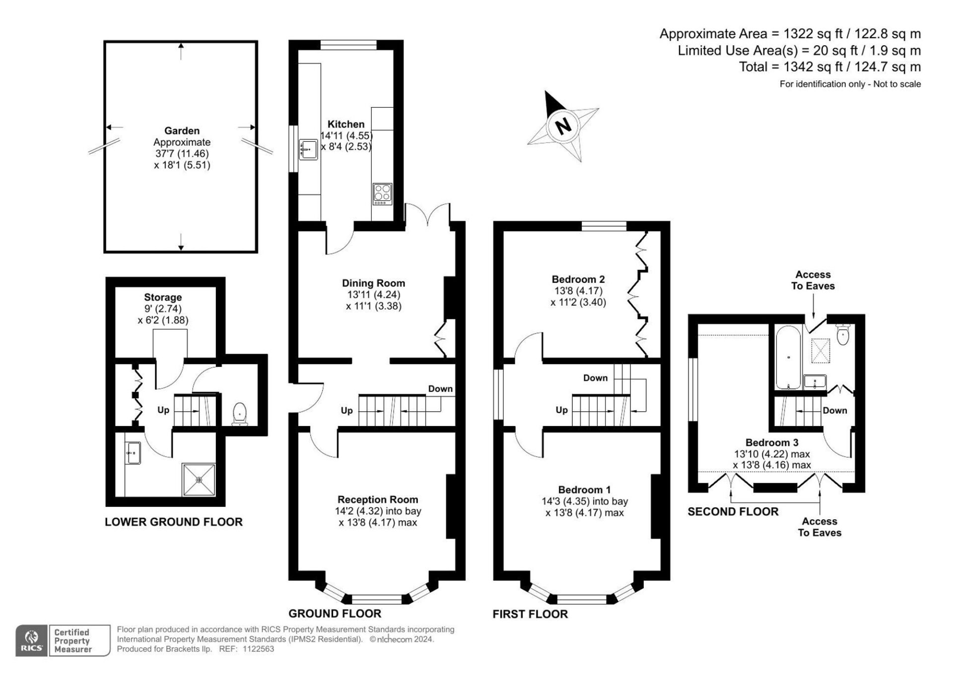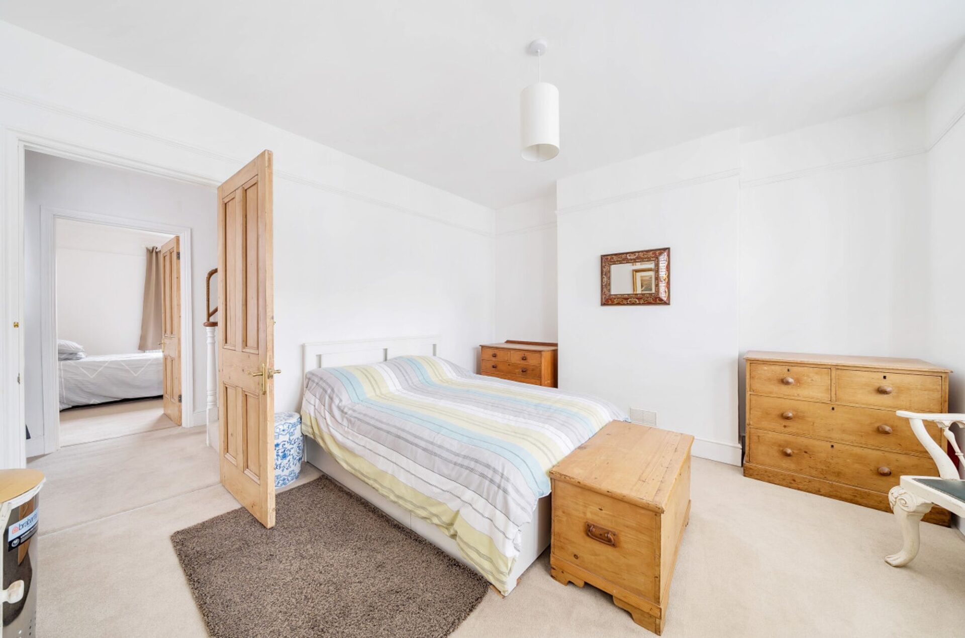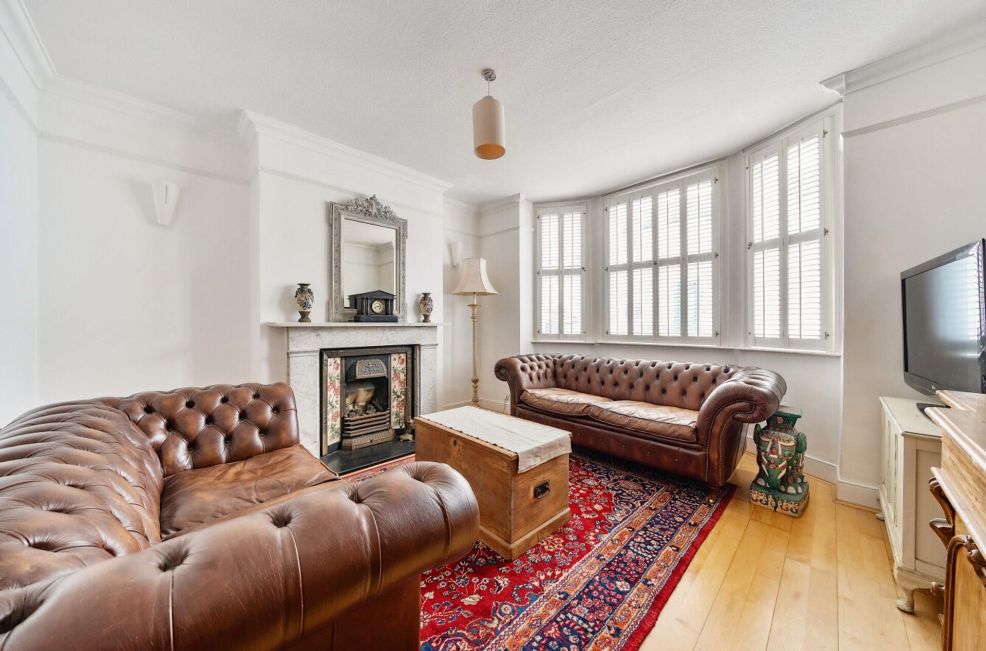 The property retains much of its original charm including fireplaces, wooden floors and bay windows. The house is immaculately presented by the current owner with scope to further convert and extend (subject to Planningg Permission). The kitchen and dining room are located at the back of the house with a fireplace in the dining room and a door leading to the patio area of the garden. The sitting room has a large pretty bay window with colonial shutters and a Victorian-style fireplace. From the hall there are stairs leading to the basement which currently has storage, a WC and separate shower room. There are also stairs from the hall to the first floor with the principal bedroom having a bay window to the front, colonial shutters and wooden floor. There is a second double bedroom with views over the garden and beyond. On the top floor, bedroom 3 shares the space with an en suite bathroom.