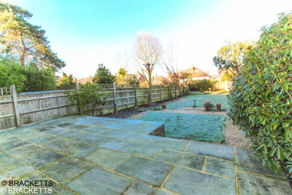 Externally, the front garden offers a well-maintained lawn with hedging, mature shrubs, an apple tree and a pebble driveway providing off-street parking for two to three vehicles.
