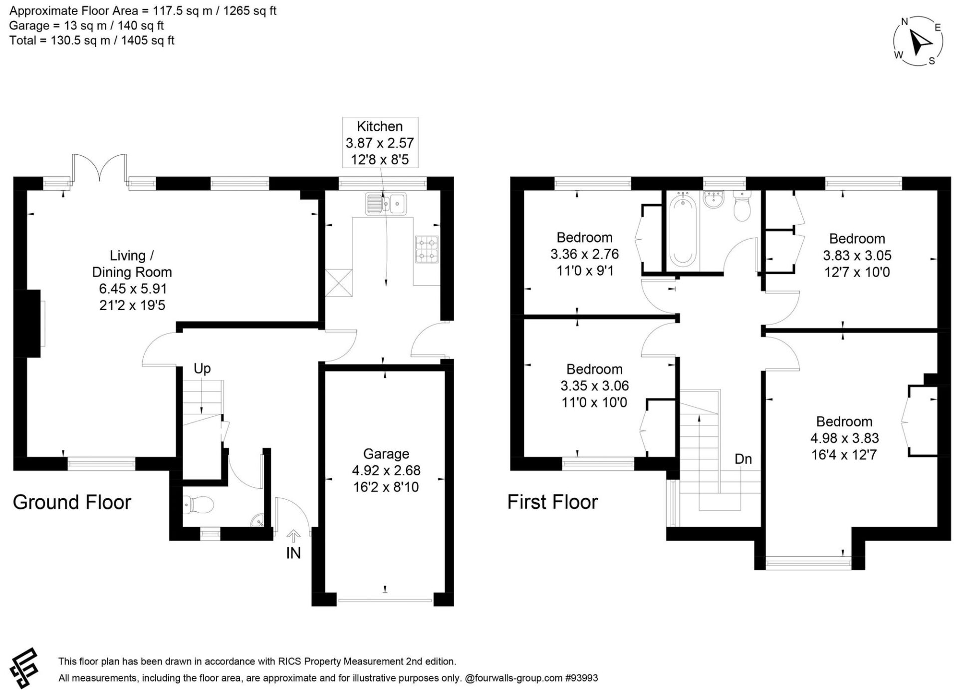 - 1405 sq ft / 130.5 Sq m ( inc integral garage )