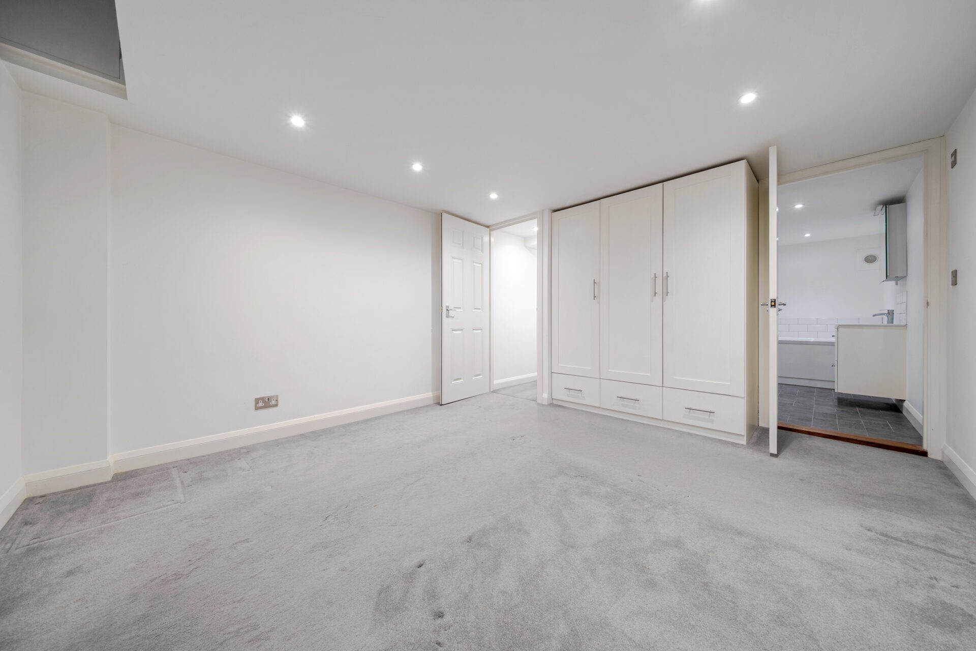 Stairs lead down to the lower ground floor, where the impressive principal bedroom is located. This substantial room offers excellent proportions and is complemented by a large and stylish en-suite bathroom, creating a private and comfortable retreat.