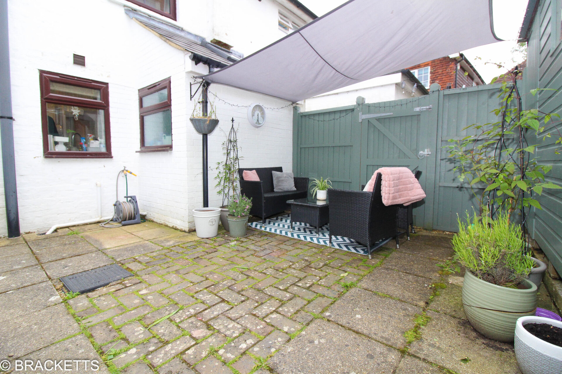 - Front parking space and two garden areas