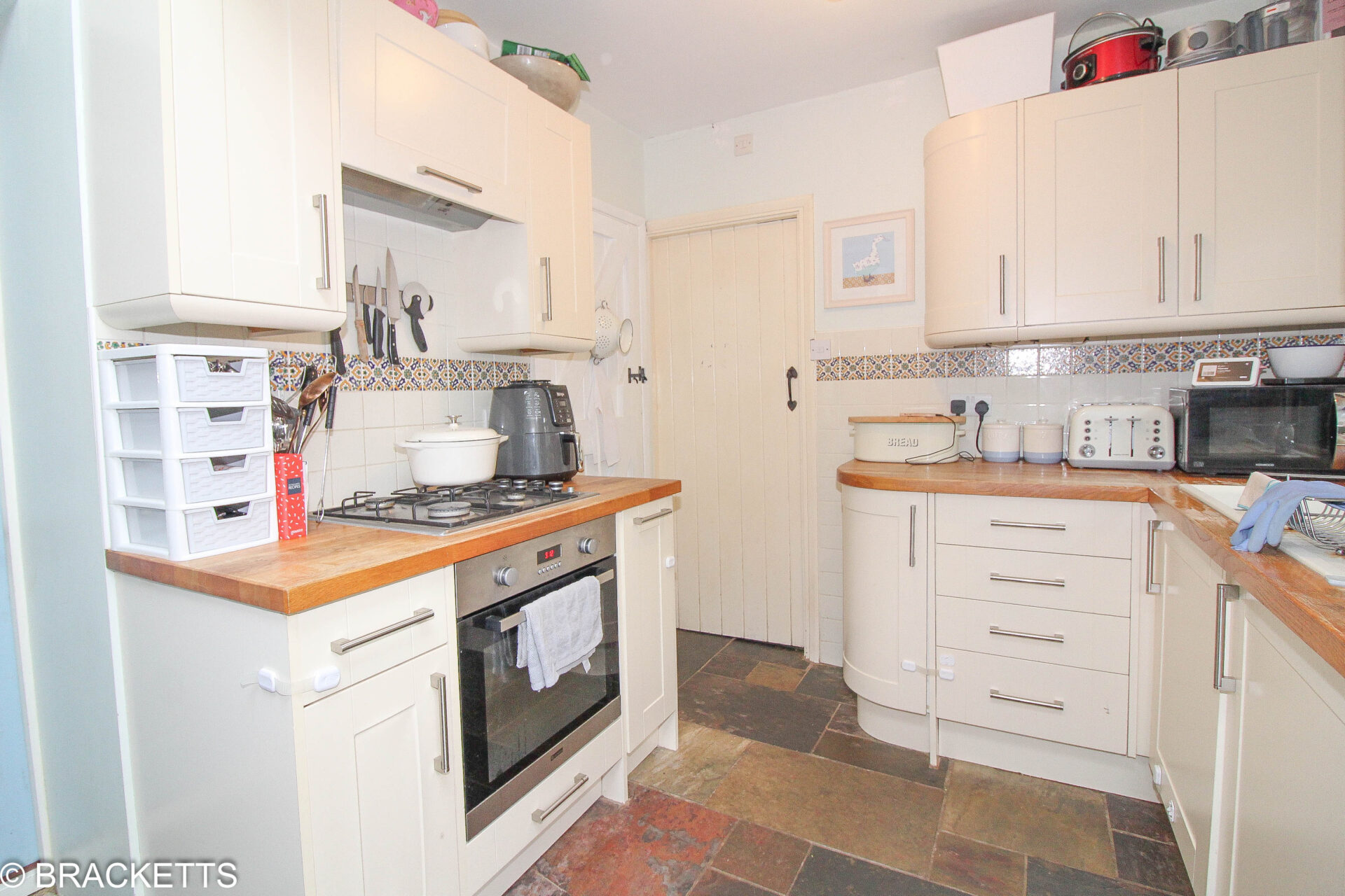The property has a host of character features, double glazing and gas central heating to accommodation comprising to the Ground Floor sitting room with wood-burner and stairs up, the kitchen breakfast room has two areas of shaker style fittings with timber worktops one with inset sink the other with integrated gas hob, electric oven beneath and extractor over - within the breakfast area there is a continuation of tiled flooring, a roof light and doors to the front and rear gardens. bathroom with a white suite and chrome fittings comprising a wet shower area, bath, washbasin, and WC., tiled floor/walls and heated towel rail