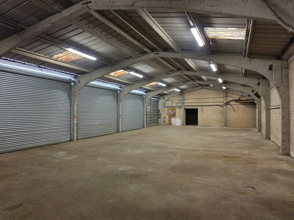 The warehouse is of concrete frame construction beneath a pitched corrugated roof and is accessed via multiple loading doors, with an interconnecting door to the offices and WC facilities.