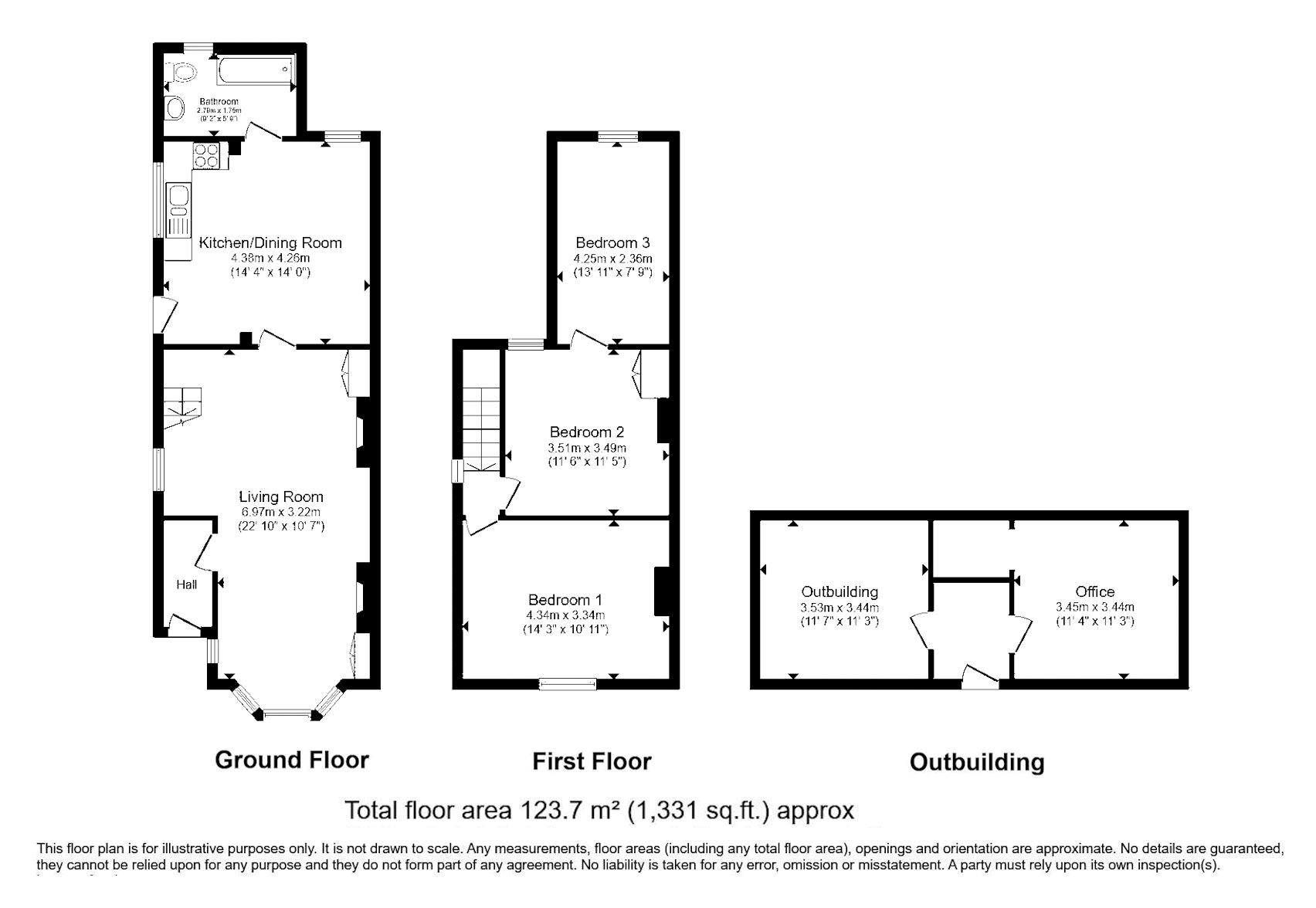 Internally comprising entrance hall, large open plan sitting room with feature bay window, modernised open plan kitchen / breakfast room and ground floor family bathroom. To the first floor there are three double bedrooms with one accessed through another.